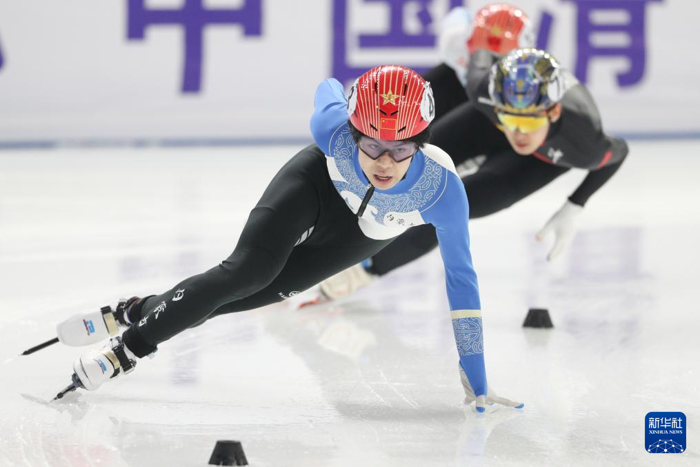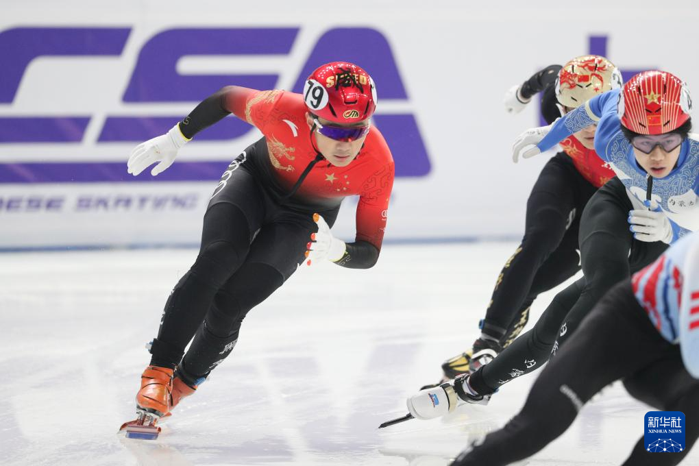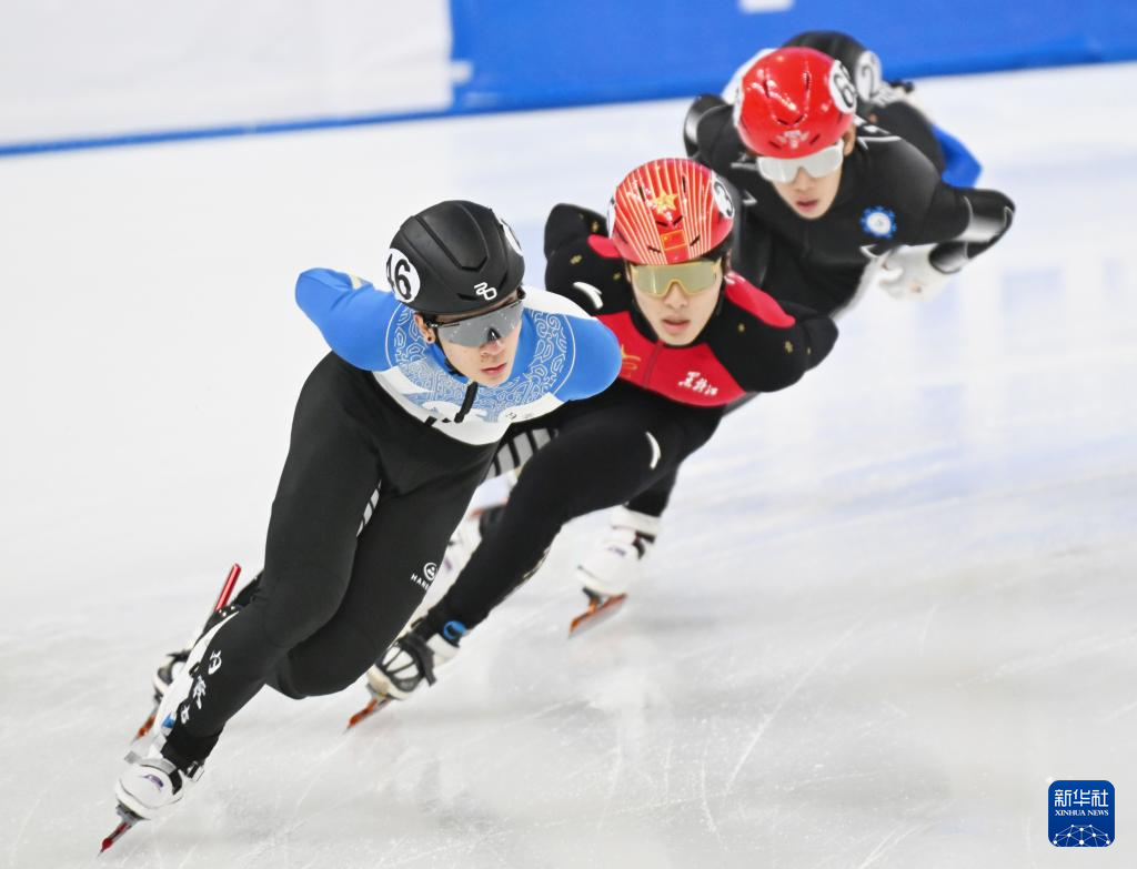 11月14日,内蒙古自治区竞技体育训练中心选手朱昱璋(前)在男子甲组1500米四分之一决赛中。他晋级半决赛。