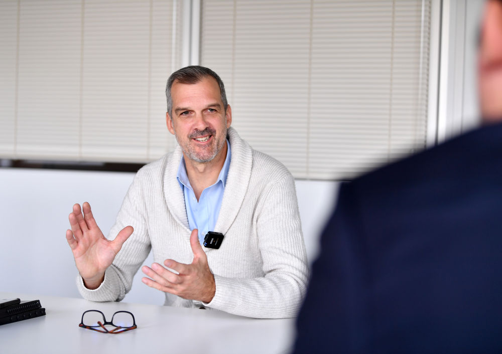 11月13日,世界自行车中心主管雅克·兰德里接受采访。新华社记者 连漪 摄