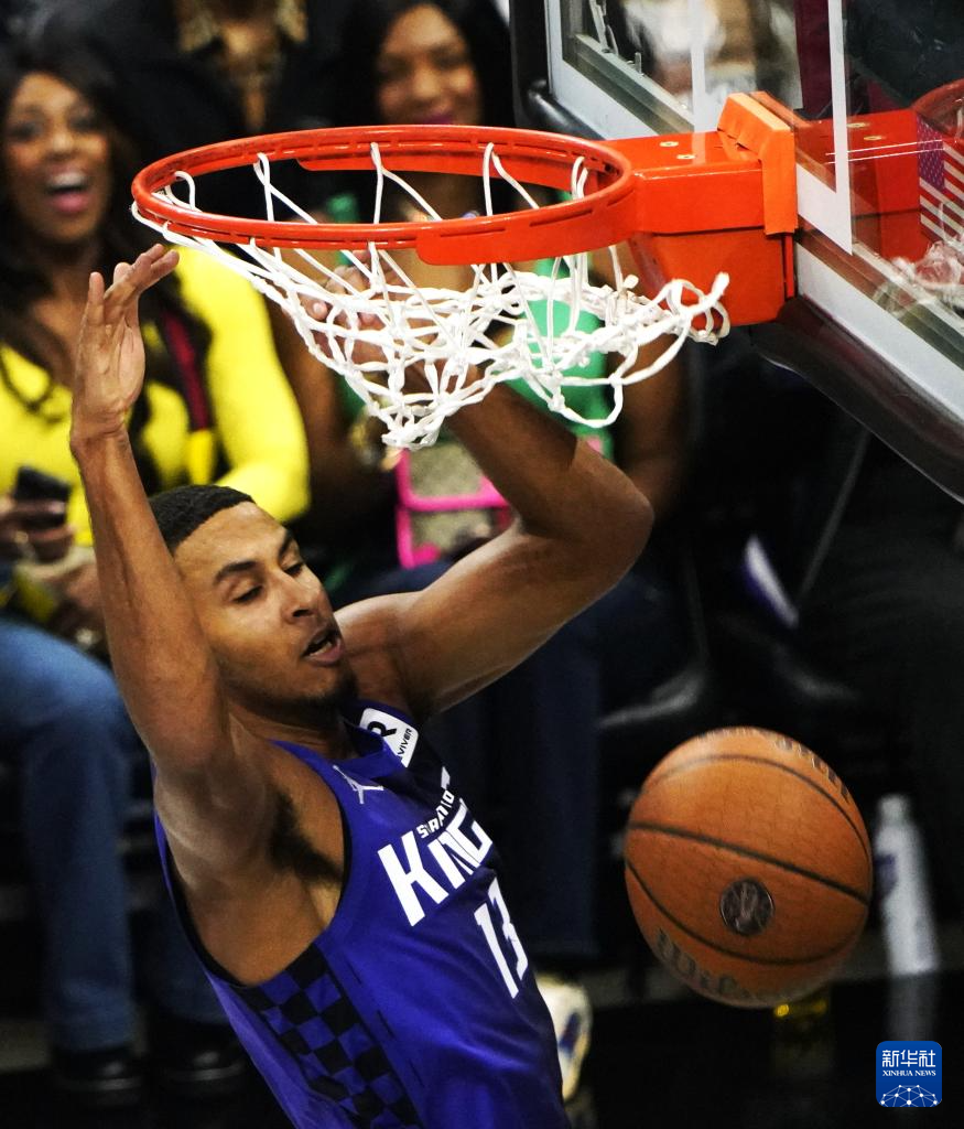 11月15日,国王队球员穆雷在比赛中扣篮。