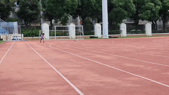 在刘锦函日常训练的田径场上