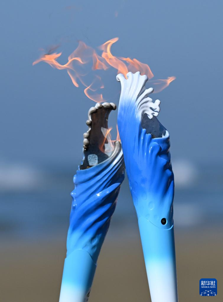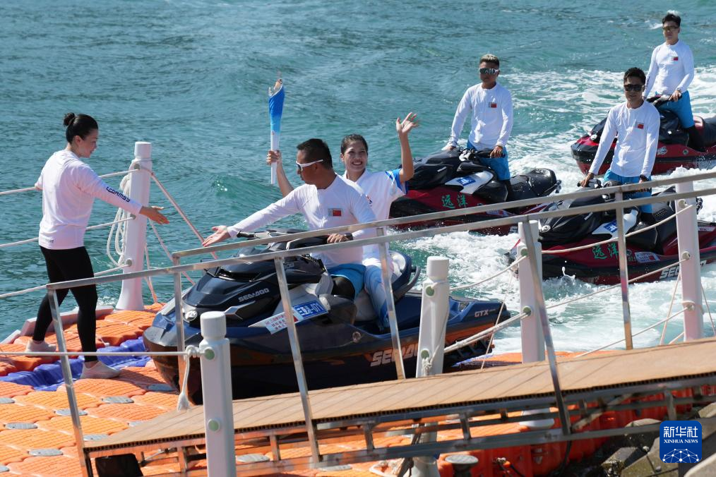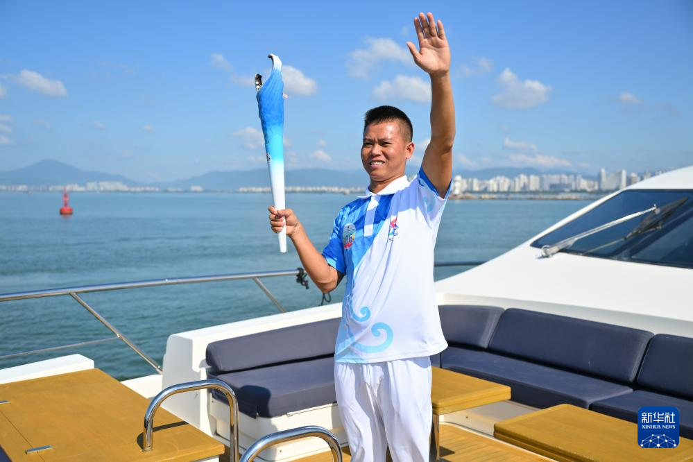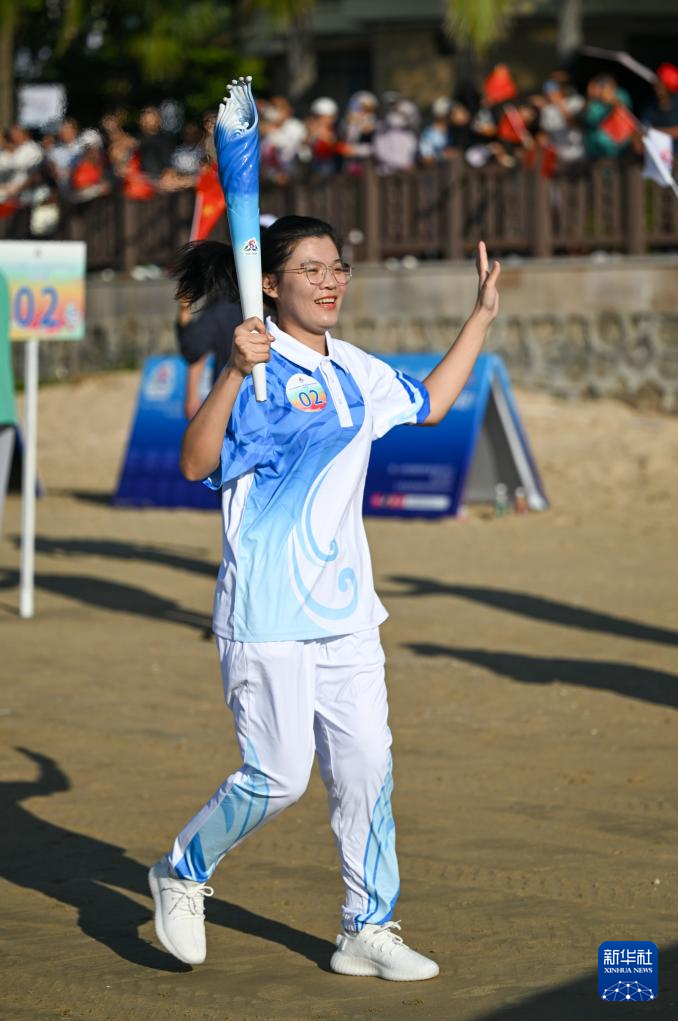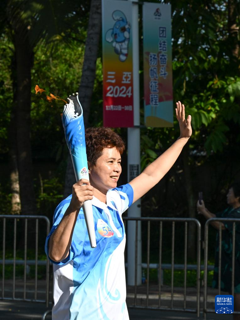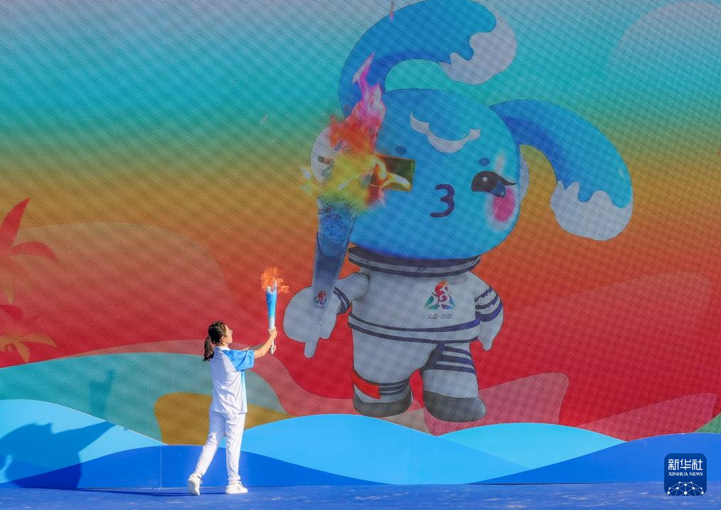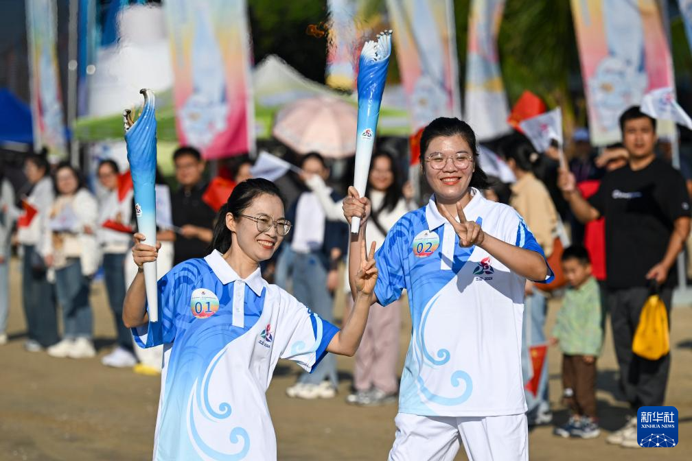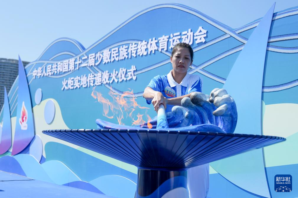 当日,第十二届全国少数民族传统体育运动会火炬实地传递活动在海南三亚举行。