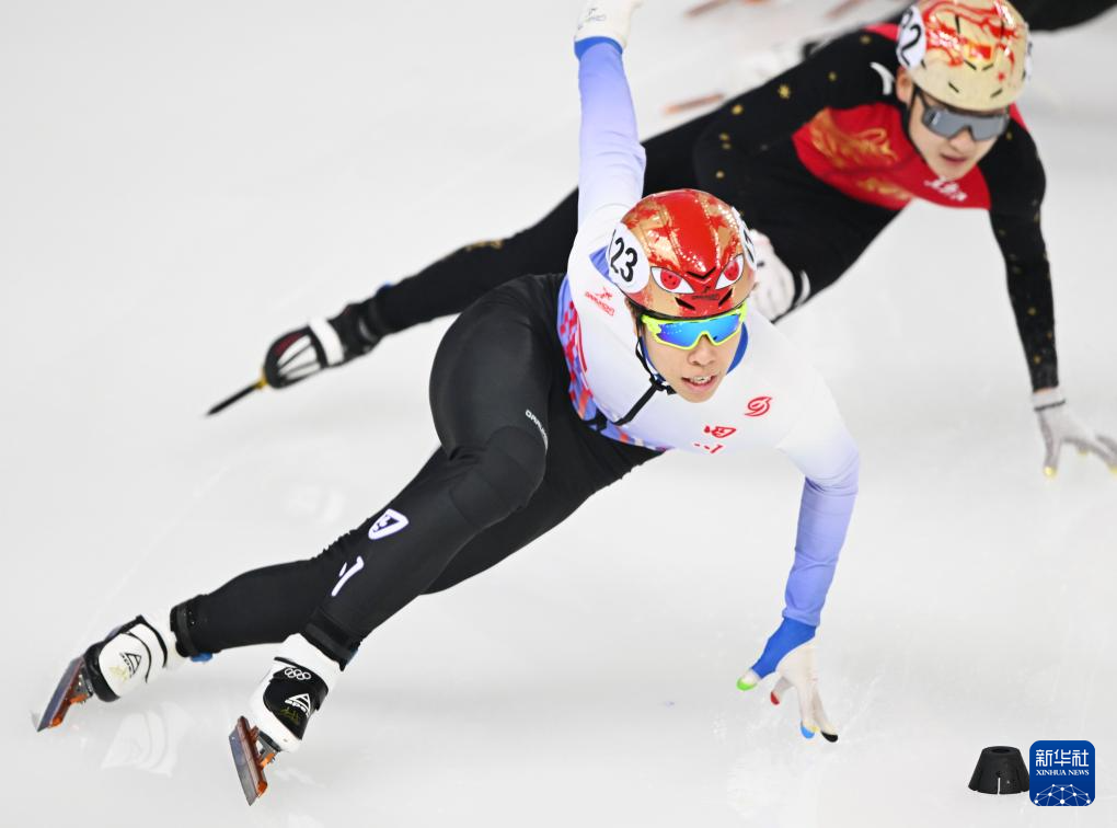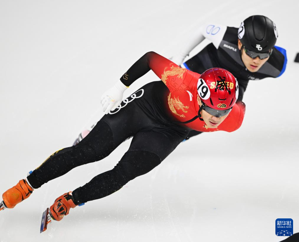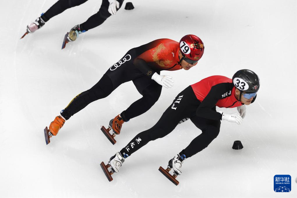 11月16日,哈尔滨市冬季运动项目训练中心选手任子威(左)在比赛中。最终他获得第四名。
