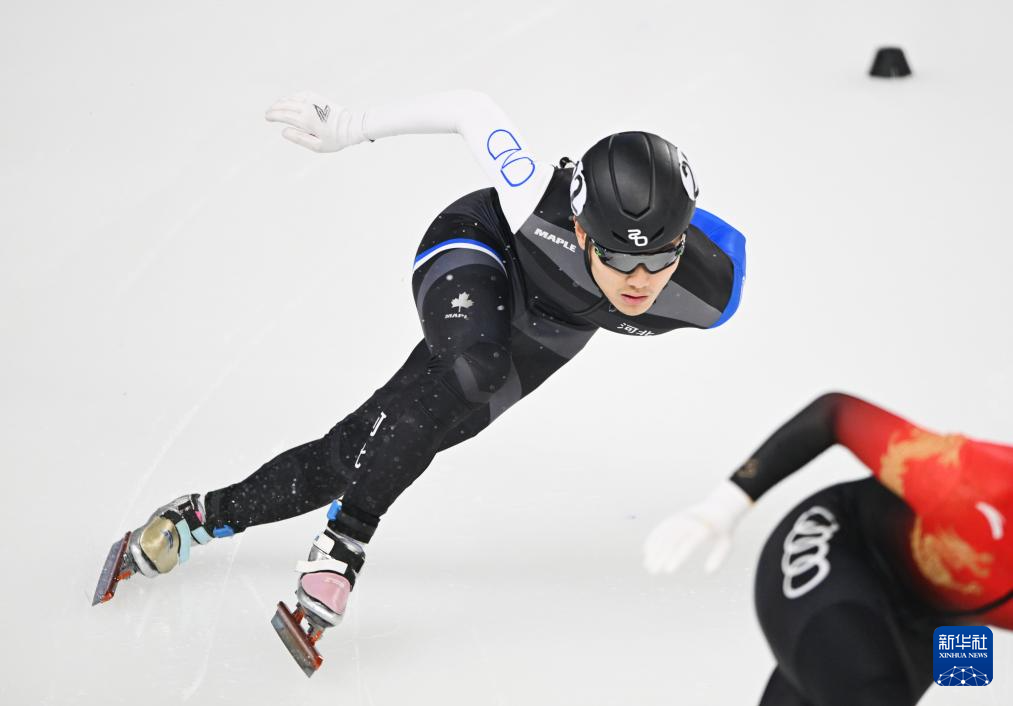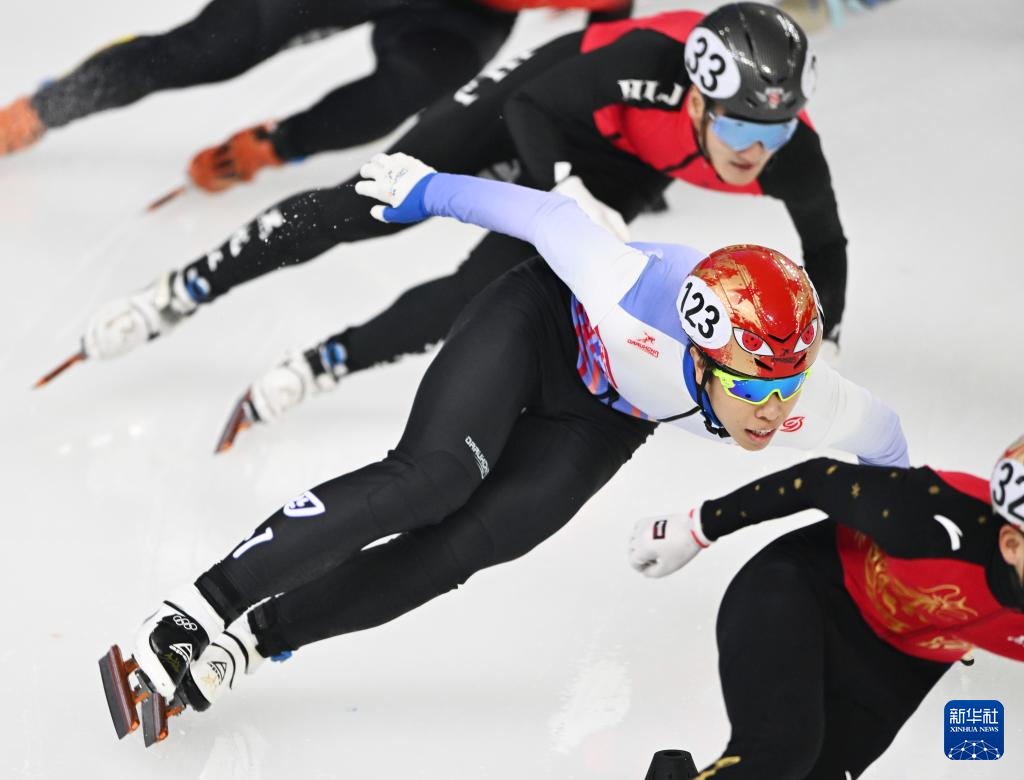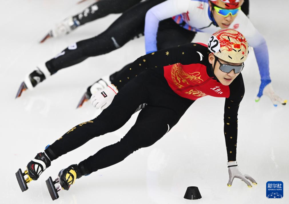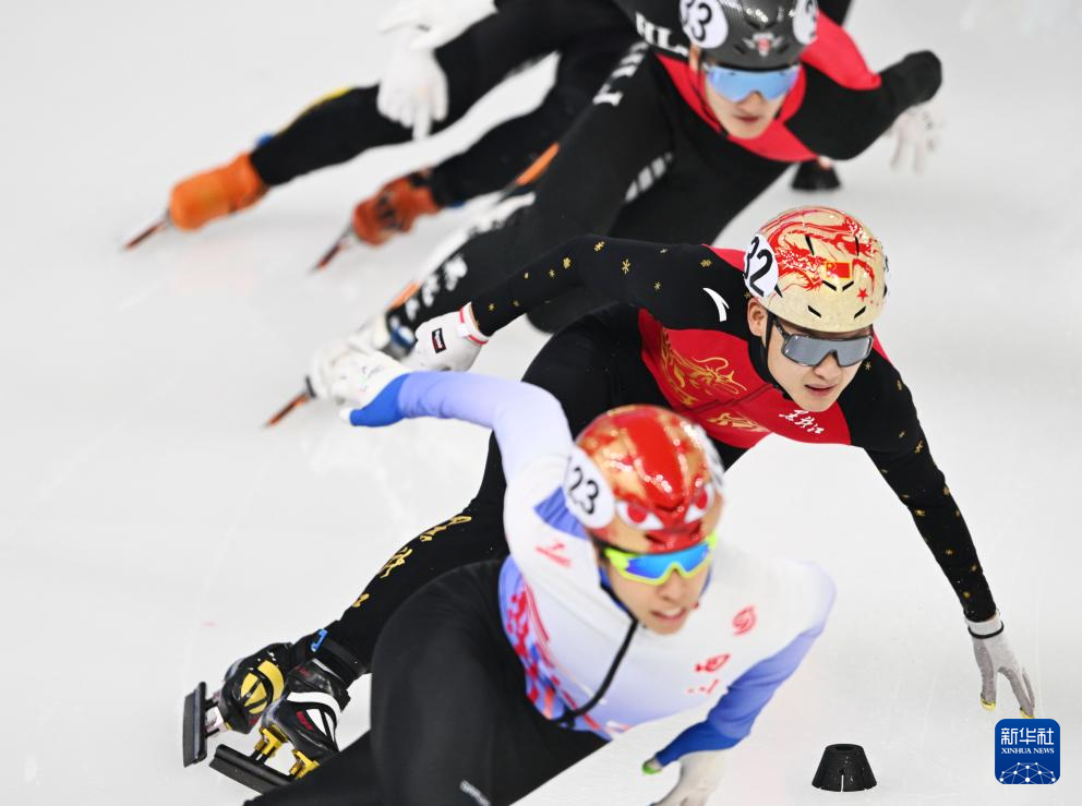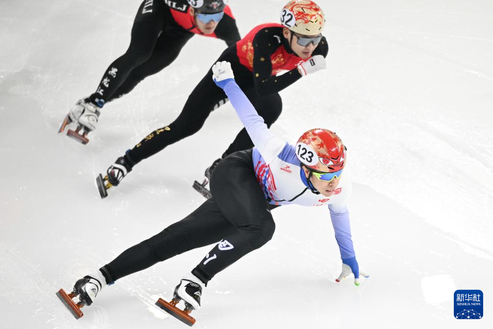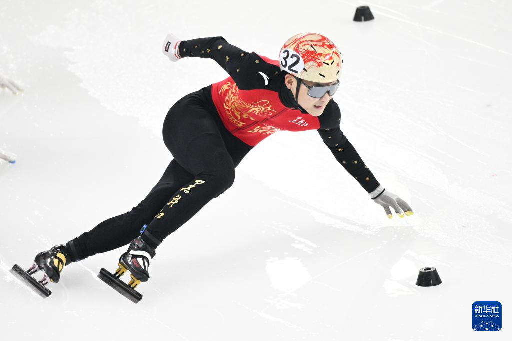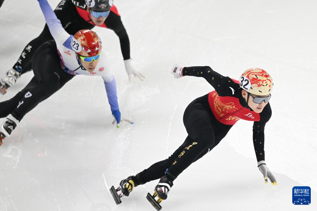 11月16日,哈尔滨市冬季运动项目训练中心选手任子威(前)在比赛中。最终他获得第四名。