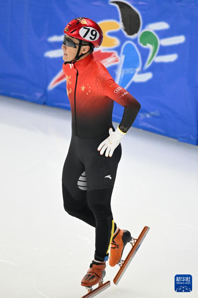 11月16日,哈尔滨市冬季运动项目训练中心选手任子威在比赛前。最终他获得第四名。