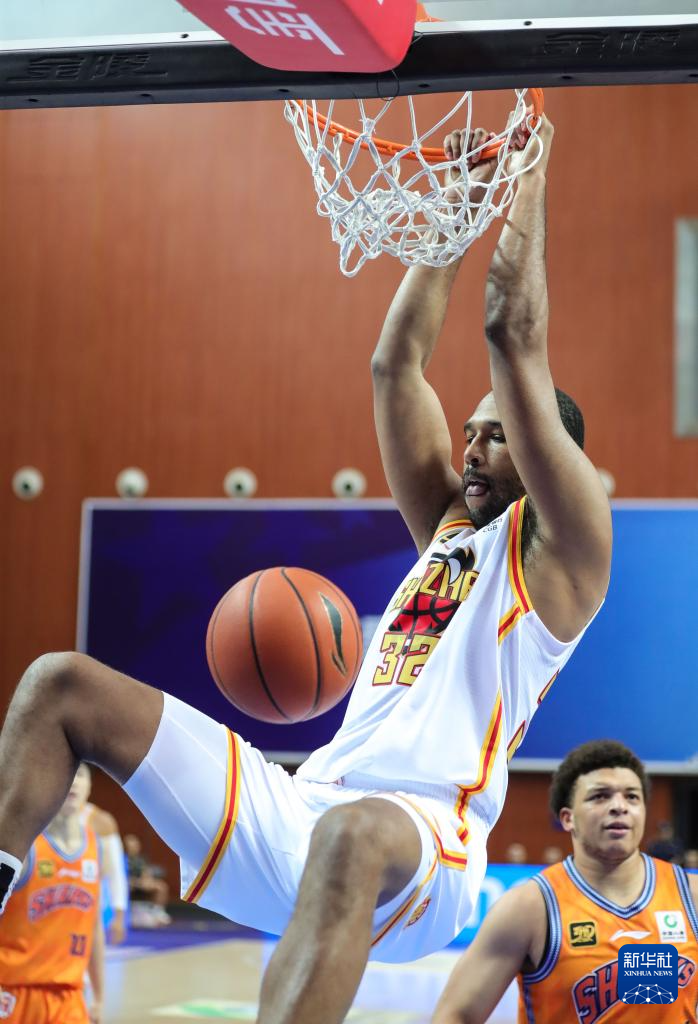 11月16日,深圳马可波罗队球员汤普森在比赛中扣篮。