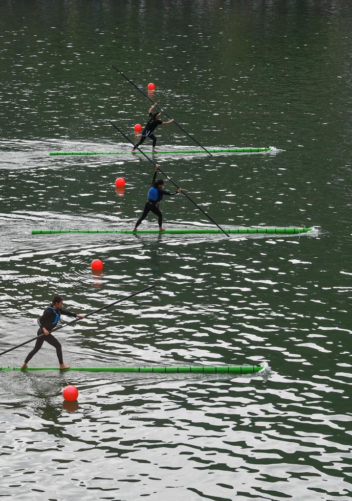 6月11日,选手在贵州省镇远县㵲阳河上进行独竹漂比赛。新华社记者 杨文斌 摄