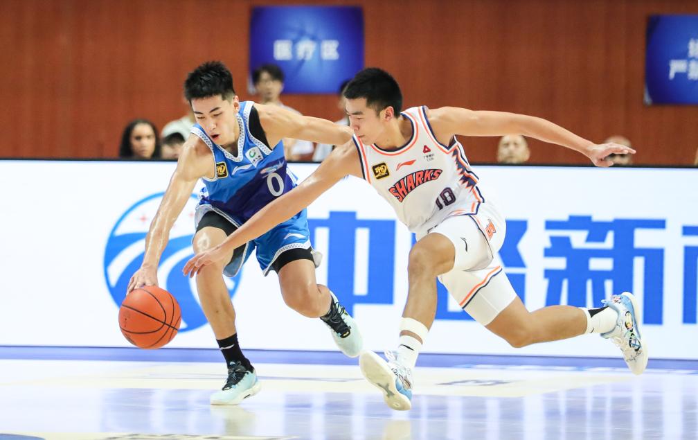 11月17日,上海队球员刘梓鹏(右)和福建队球员刘金雨在比赛中拼抢。新华社发(黄志摄)