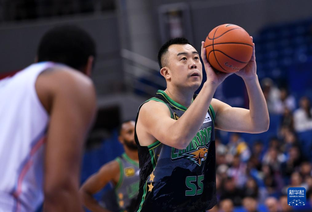 11月17日,辽宁本钢队球员鄢手骐(右)在新疆伊力特队球员李炎哲的防守下投篮。