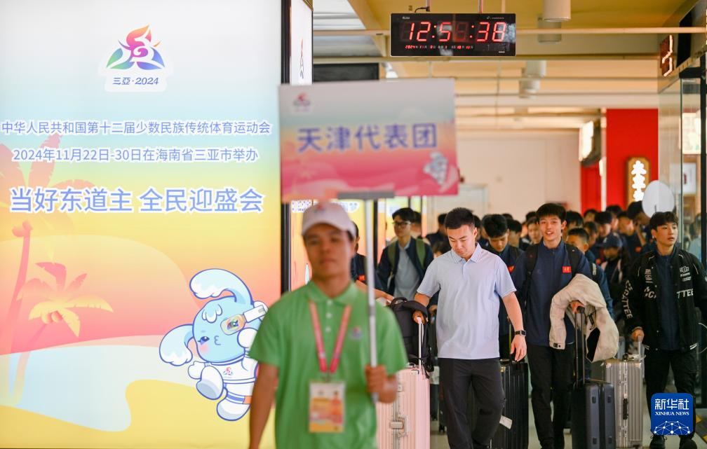 当日,参加第十二届全国少数民族传统体育运动会的多个代表团抵达海南三亚。