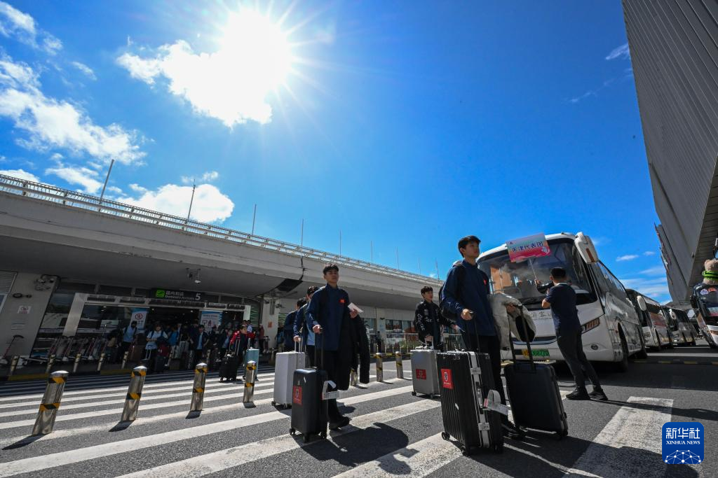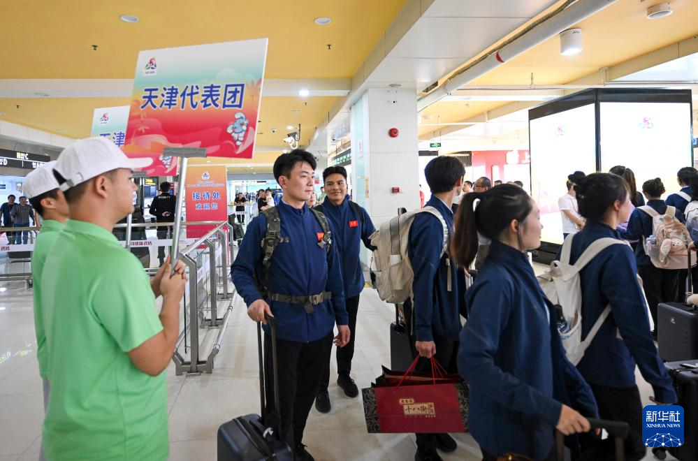 11月18日,天津代表团成员准备乘车前往运动员驻地。