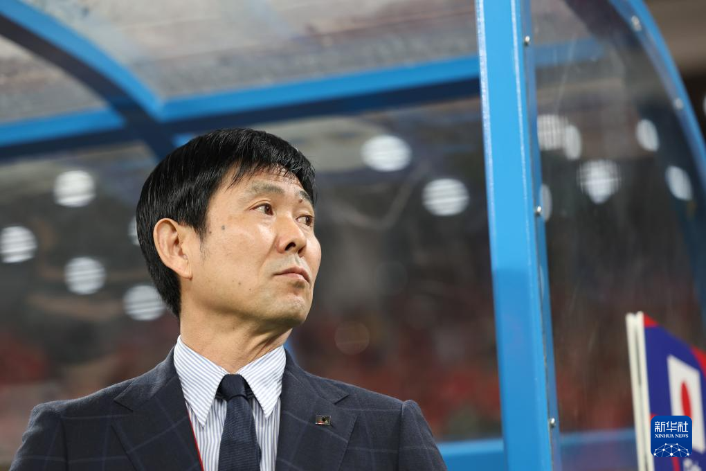 11月19日,日本队主教练森保一在比赛前。新华社记者 胡星宇 摄