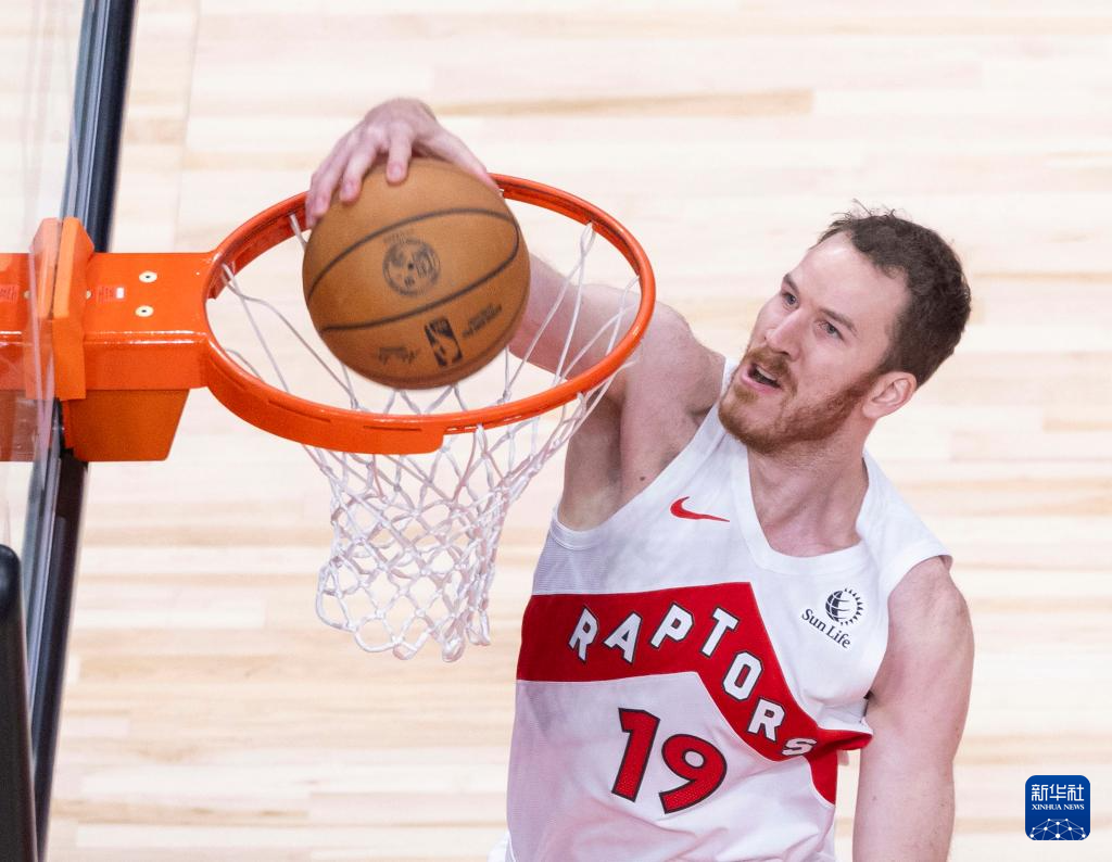 11月18日,猛龙队球员珀尔特尔在比赛中扣篮。