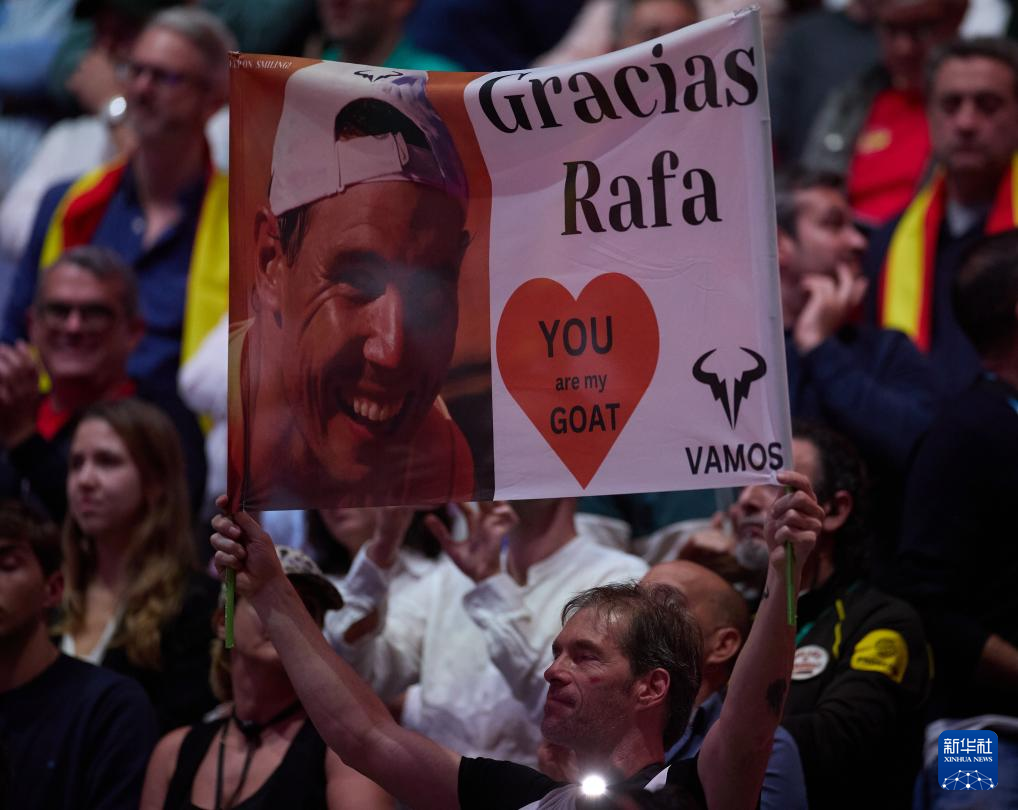 11月19日,一名球迷在比赛中手持支持纳达尔的标语。新华社记者 孟鼎博 摄