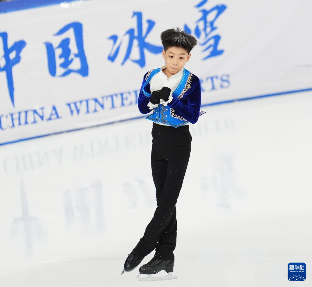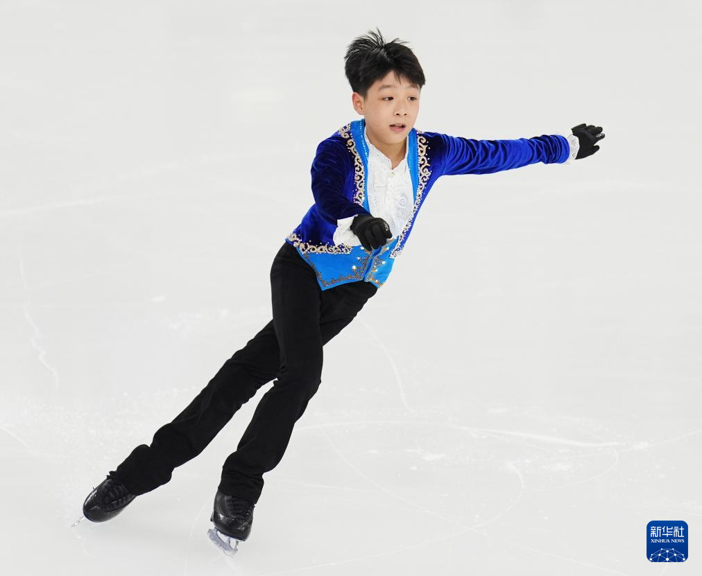 11月20日,黑龙江省冰上训练中心选手张博涵在少年甲组男子单人滑比赛中。他以114.56分的成绩获得第一名。