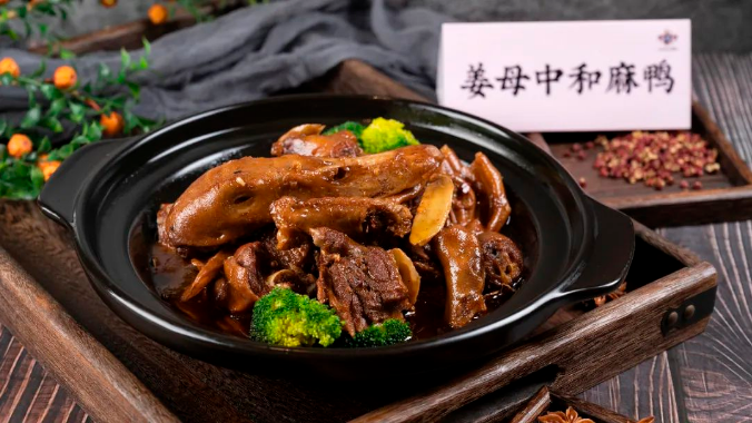 厨谚道“无鸡不鲜,无鸭不香”。选用广安优质麻鸭与黄龙贡米,巧妙搭配烹制的一款色泽棕黄、表层酥脆、内心细软、咸鲜适口、香气十足的鸭馔,是“有鸭则香”的匠心演绎。在鸭香的基础上还增添了贡米的香,“二香”共奉一菜,其味妙不可言。