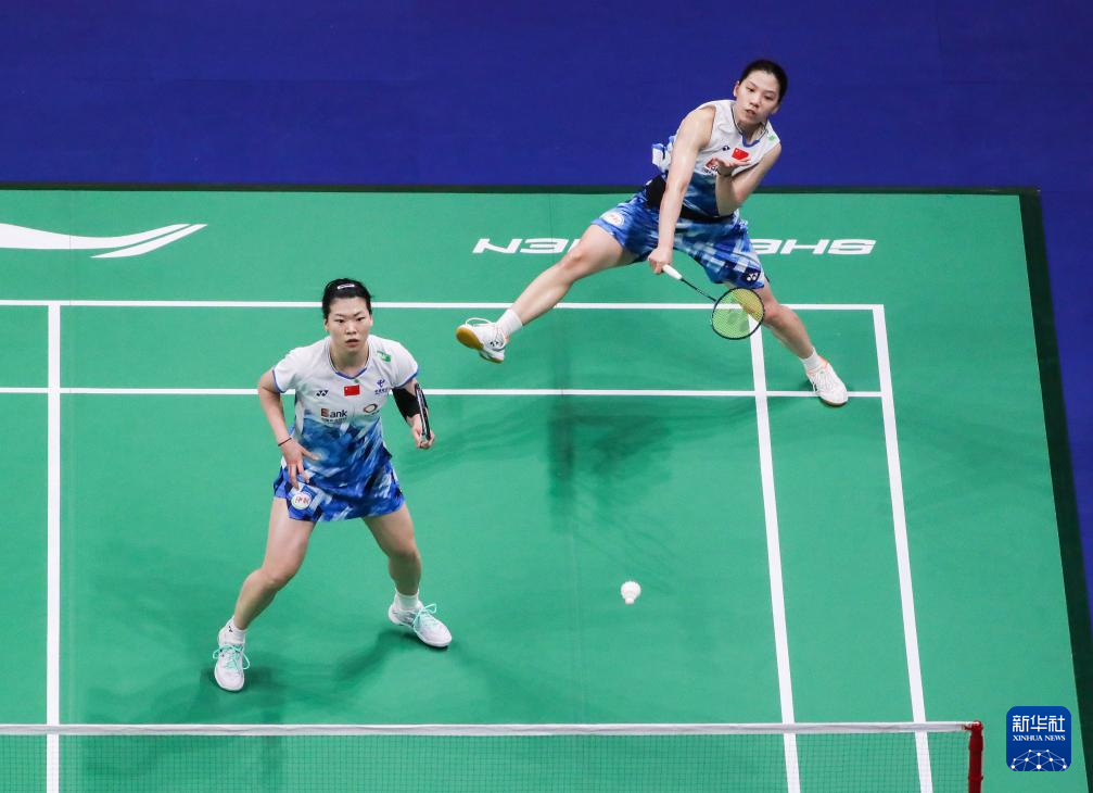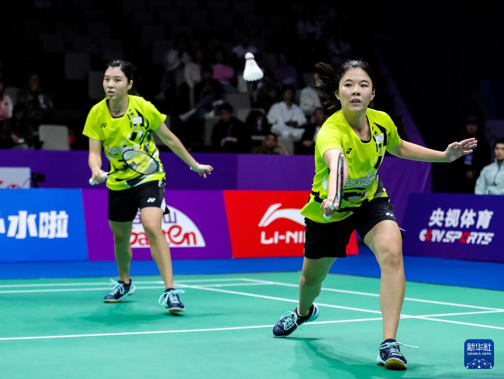 11月21日,宋硕芸(右)/余芊慧在比赛中回球。
