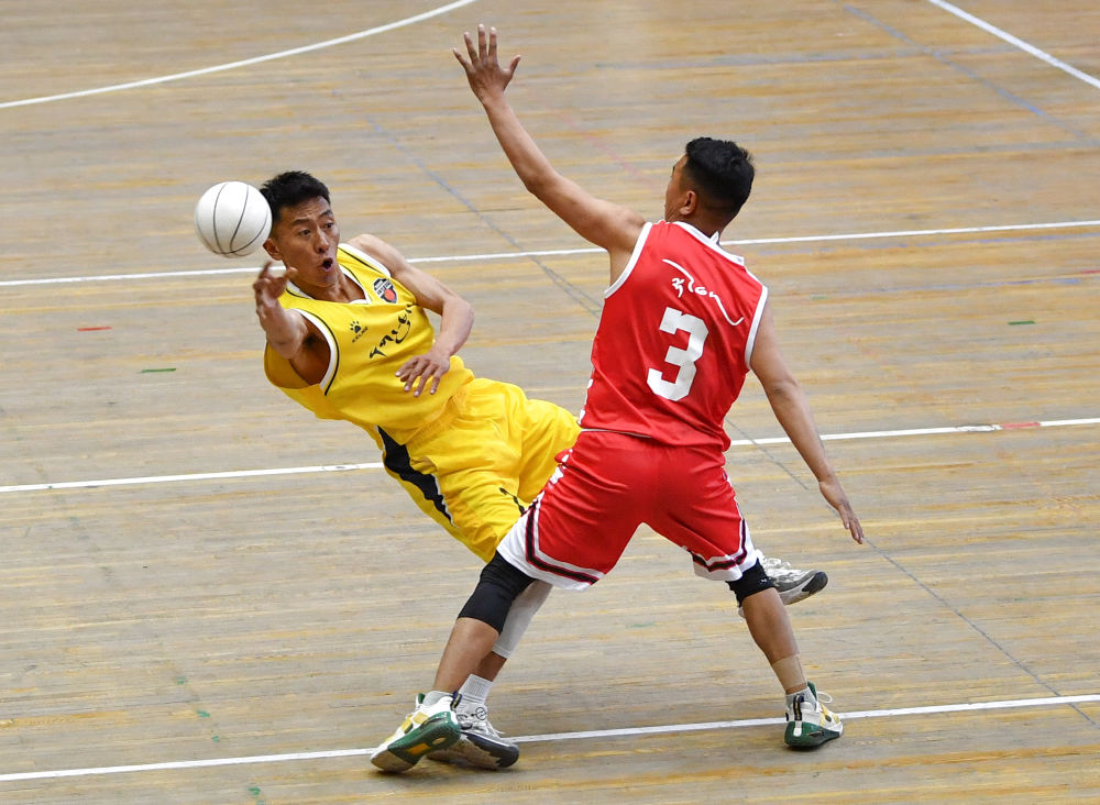 2024年5月14日,那曲队选手在第一届全国全民健身大赛(西南区)西藏自治区珍珠球选拔赛中传球。珍珠球源自满族生产活动“采珍珠”,由模仿采珠人动作演变而来。