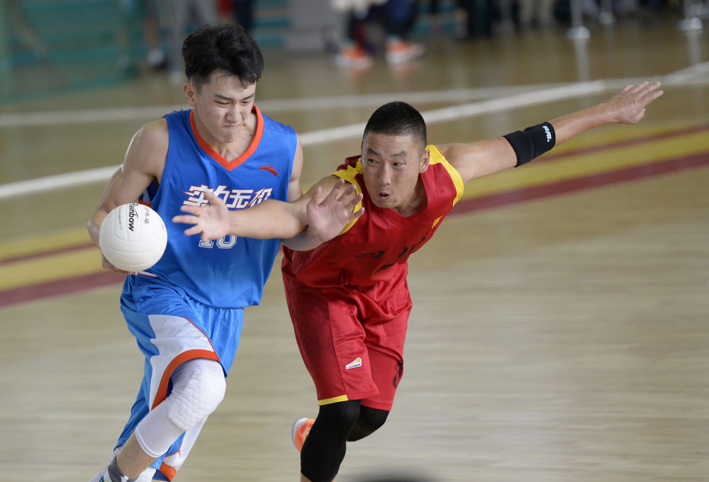 2015年8月12日,参赛选手在第十届全国少数民族传统体育运动会珍珠球项目比赛中。