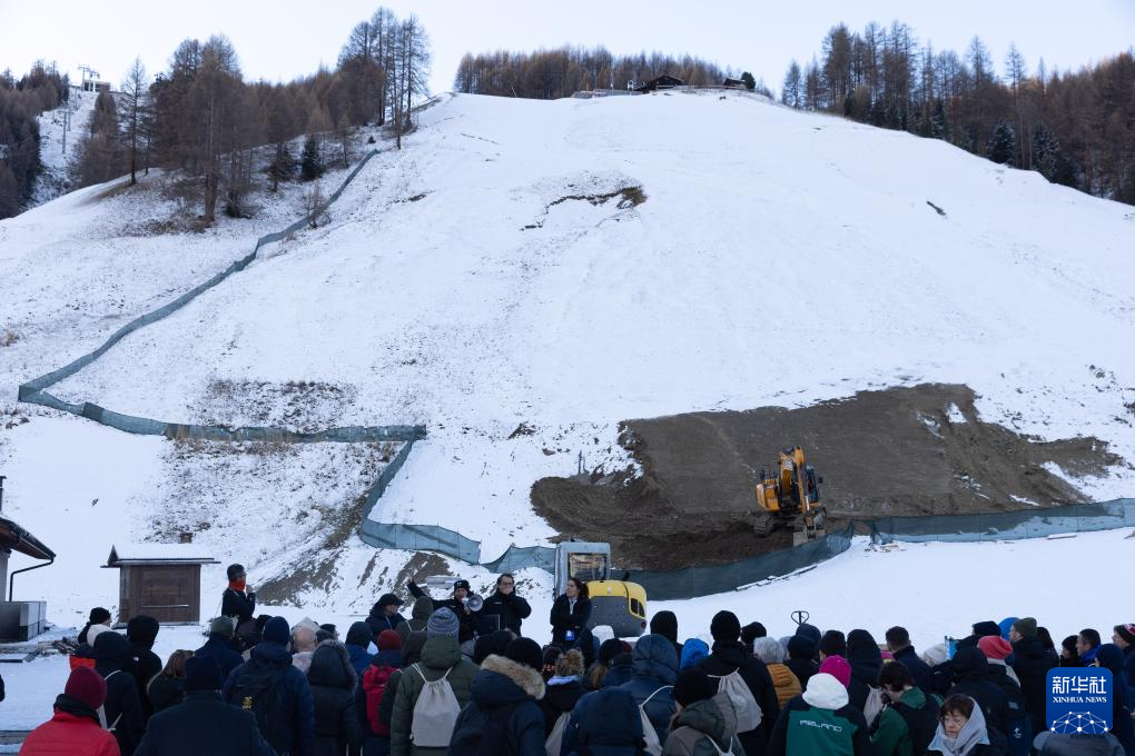 11月20日,参会人员在意大利伦巴第大区利维尼奥镇考察比赛场地。米兰-科尔蒂纳丹佩佐冬奥会自由式滑雪和单板滑雪比赛将在利维尼奥镇举行。