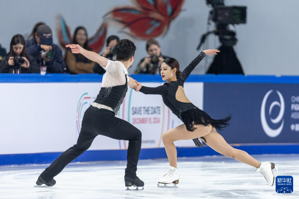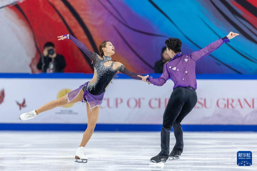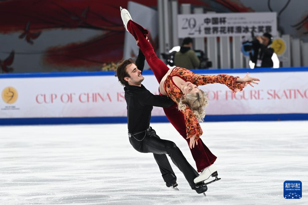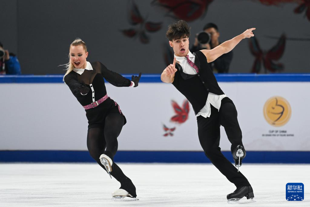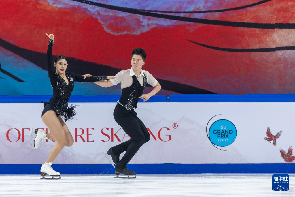 11月22日,中国组合肖紫兮(上)/何凌昊在比赛中。他们以59.96分的成绩位列第十。