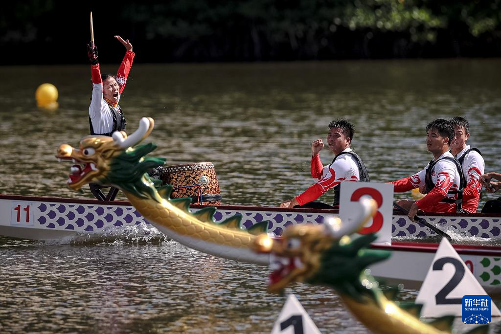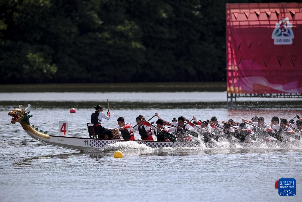 当日,第十二届全国少数民族传统体育运动会混合组(标准龙舟)200米直道赛在海南省三亚市举行。