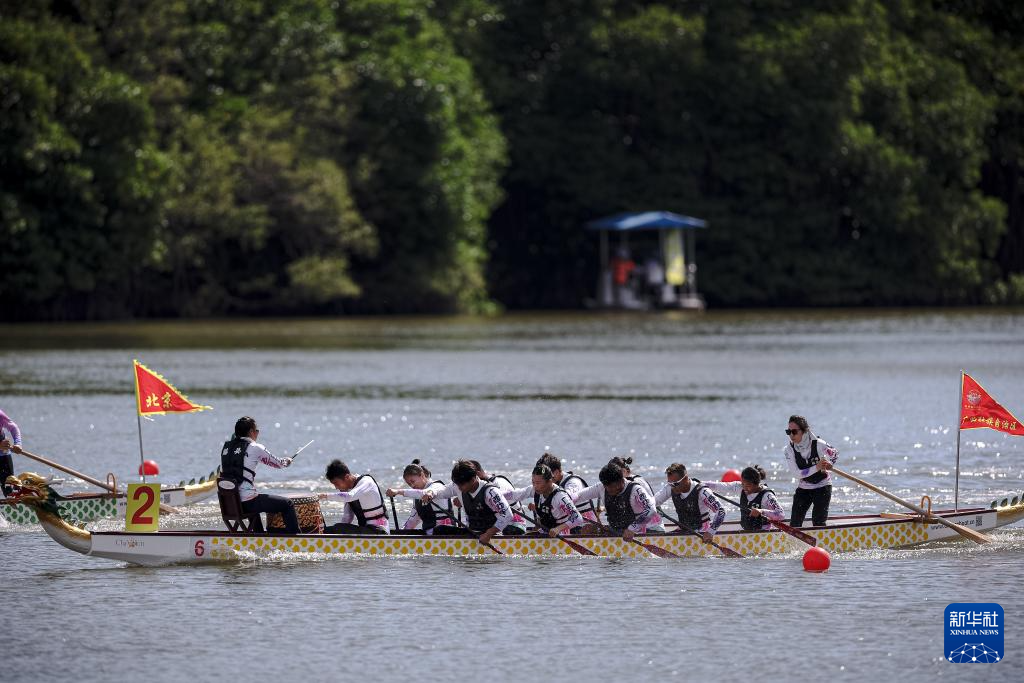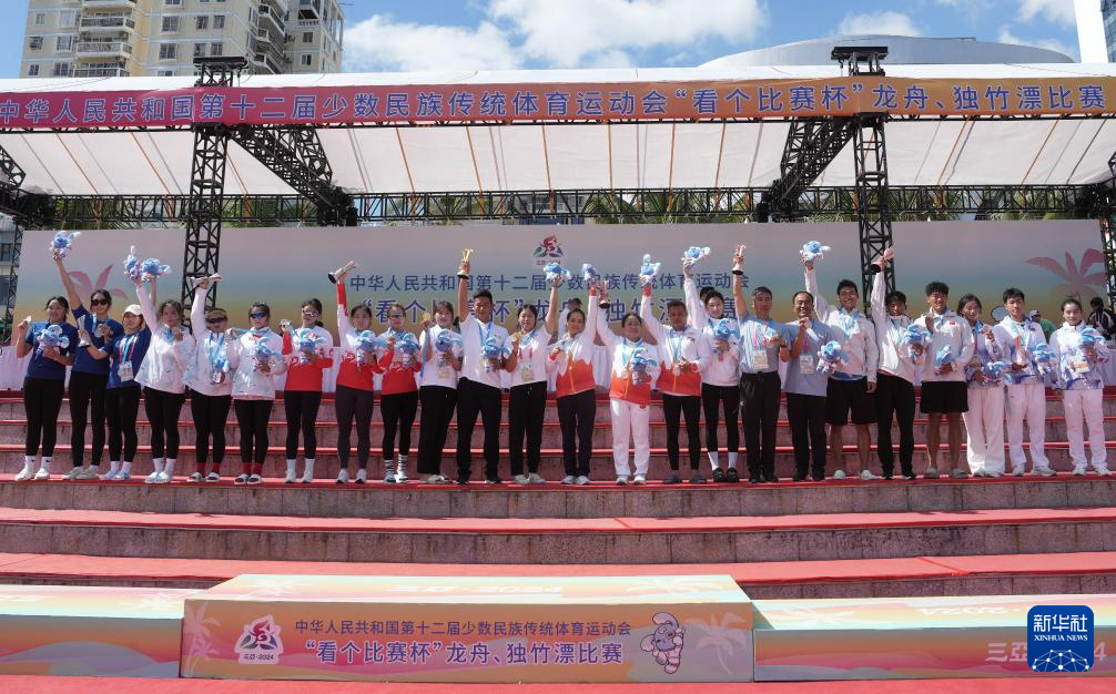 当日,第十二届全国少数民族传统体育运动会混合组(小龙舟)200米直道赛在海南省三亚市举行。