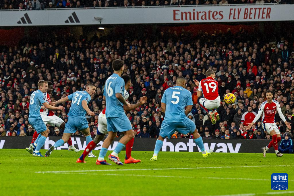 当日,在2024-2025赛季英格兰足球超级联赛第12轮比赛中,阿森纳队主场3比0战胜诺丁汉森林队。
