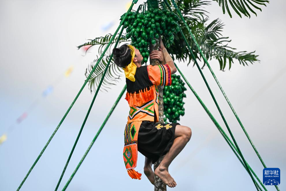 11月24日,海南队选手表演摘槟榔。
