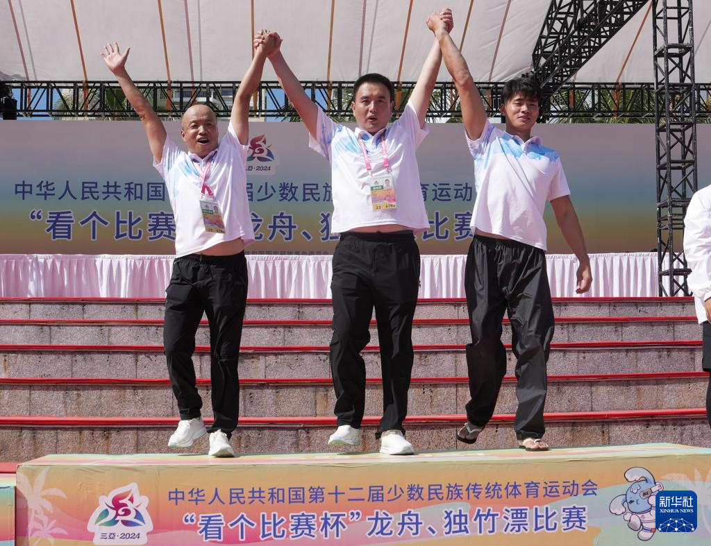 当日,第十二届全国少数民族传统体育运动会男子组(小龙舟)200米直道赛在海南省三亚市举行。
