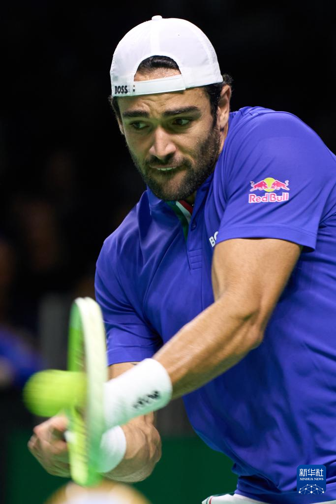11月24日,意大利队选手贝雷蒂尼在比赛中回球,他2比0战胜荷兰队选手范德赞德舒尔普。