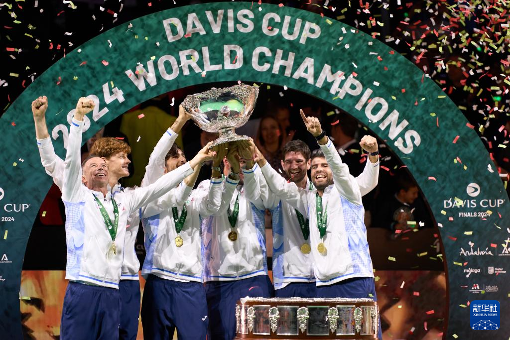 当日,在西班牙马拉加举行的2024戴维斯杯男子网球团体赛决赛中,意大利队2比0战胜荷兰队,夺得冠军。