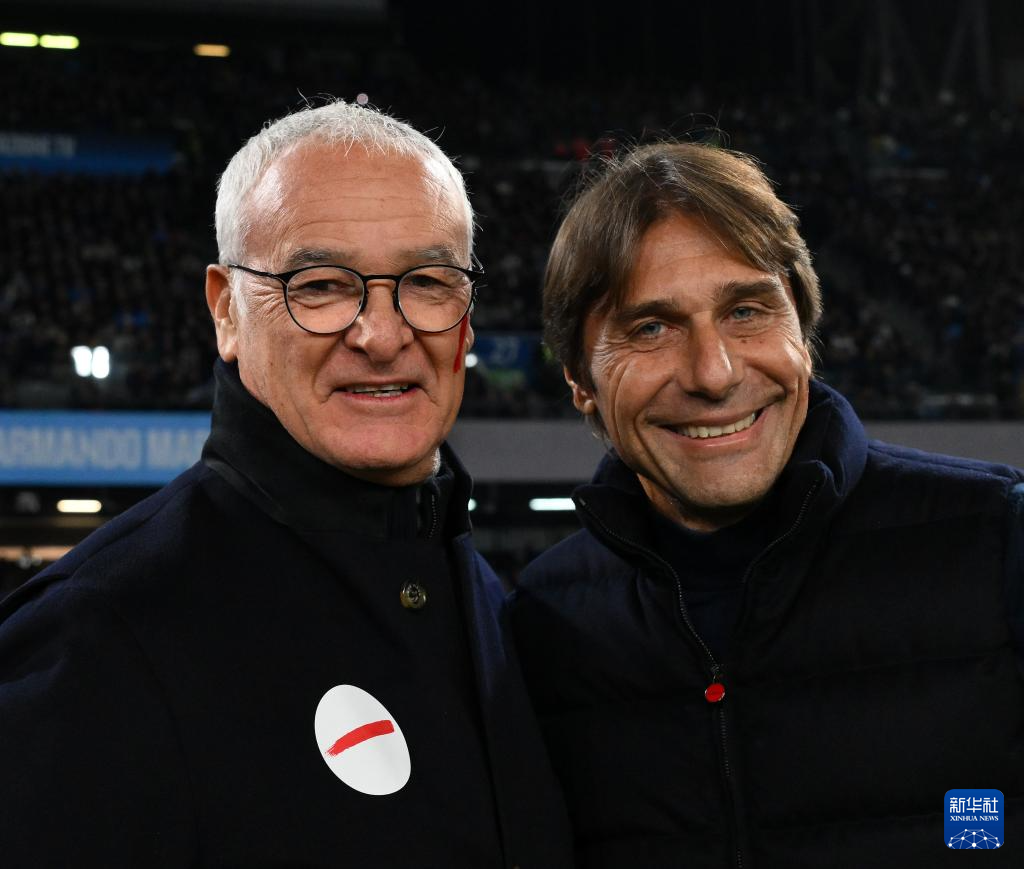 11月24日,那不勒斯队主教练孔蒂(右)与罗马队主教练拉涅利在赛前合影。