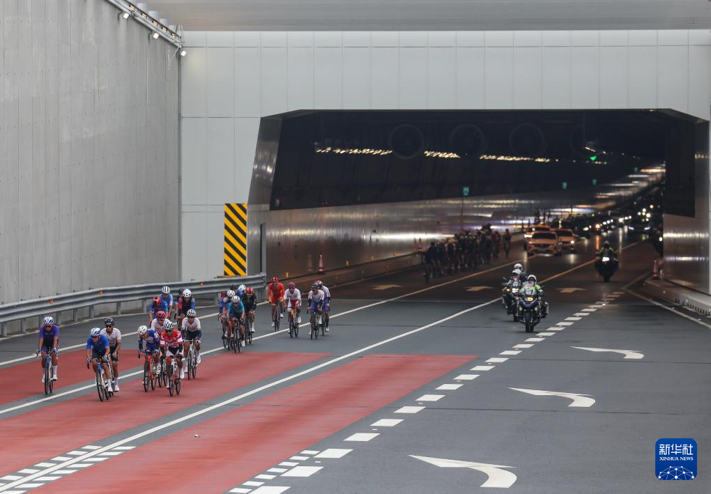 11月24日,参赛选手骑行在港珠澳大桥海底隧道西入口。