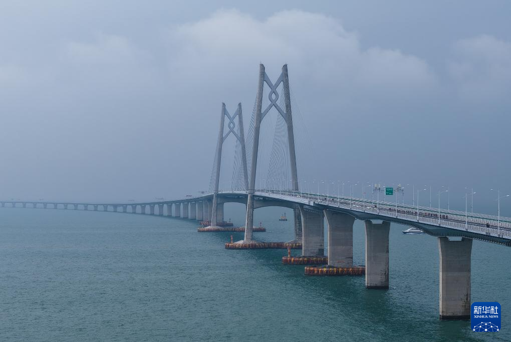 11月24日,参赛选手在港珠澳大桥上骑行(无人机照片)。