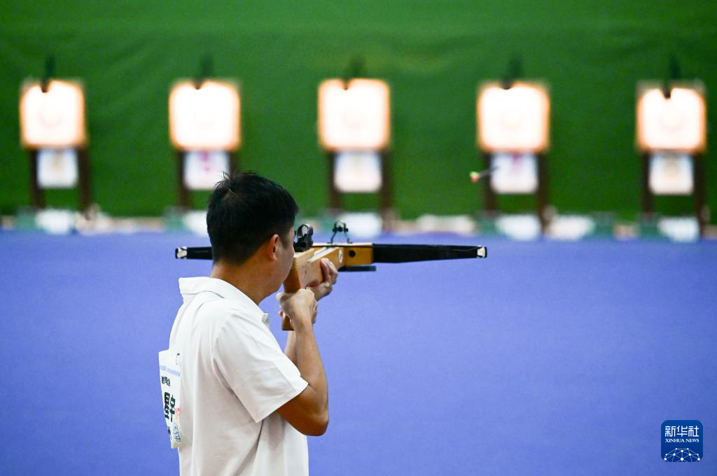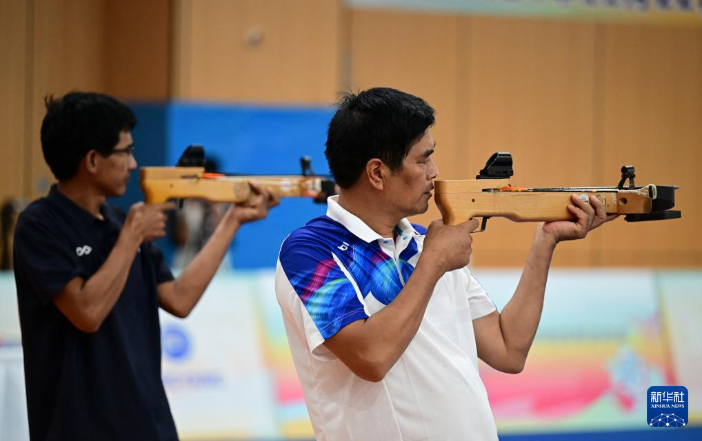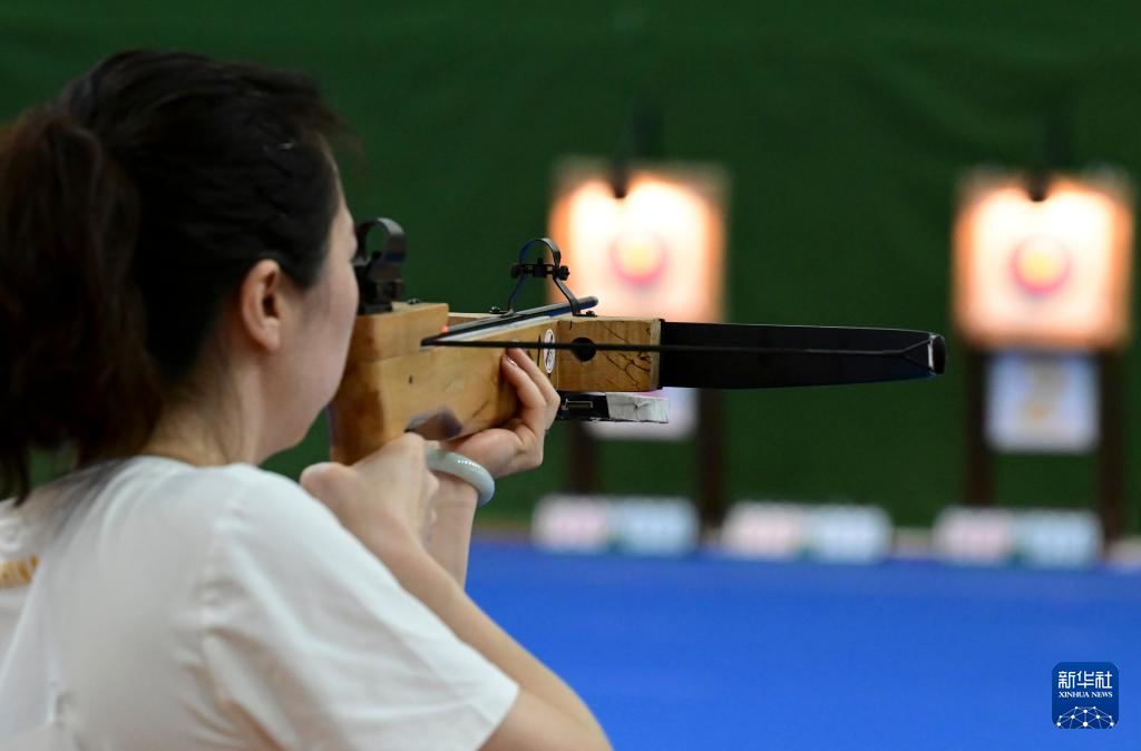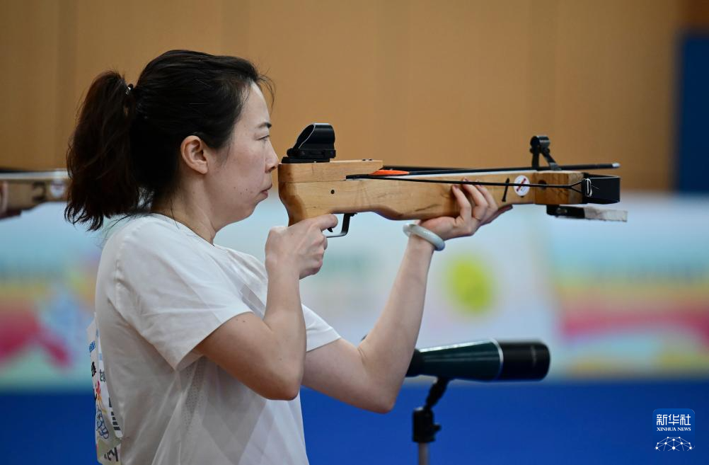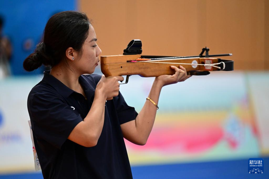 当日,第十二届全国少数民族传统体育运动会射弩项目民族标准弩混合团体决赛在海南省三亚市上海外国语大学三亚附属中学体育馆进行。