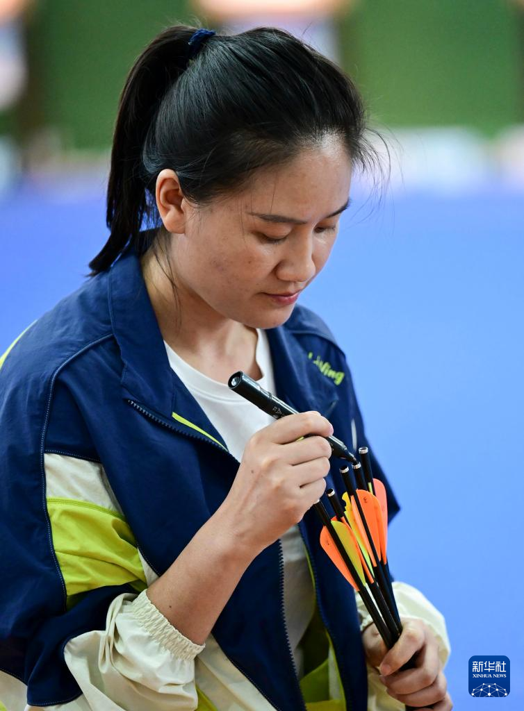11月25日,重庆队选手朱茂春在赛前给箭尾做标记。最终,重庆队获得二等奖。