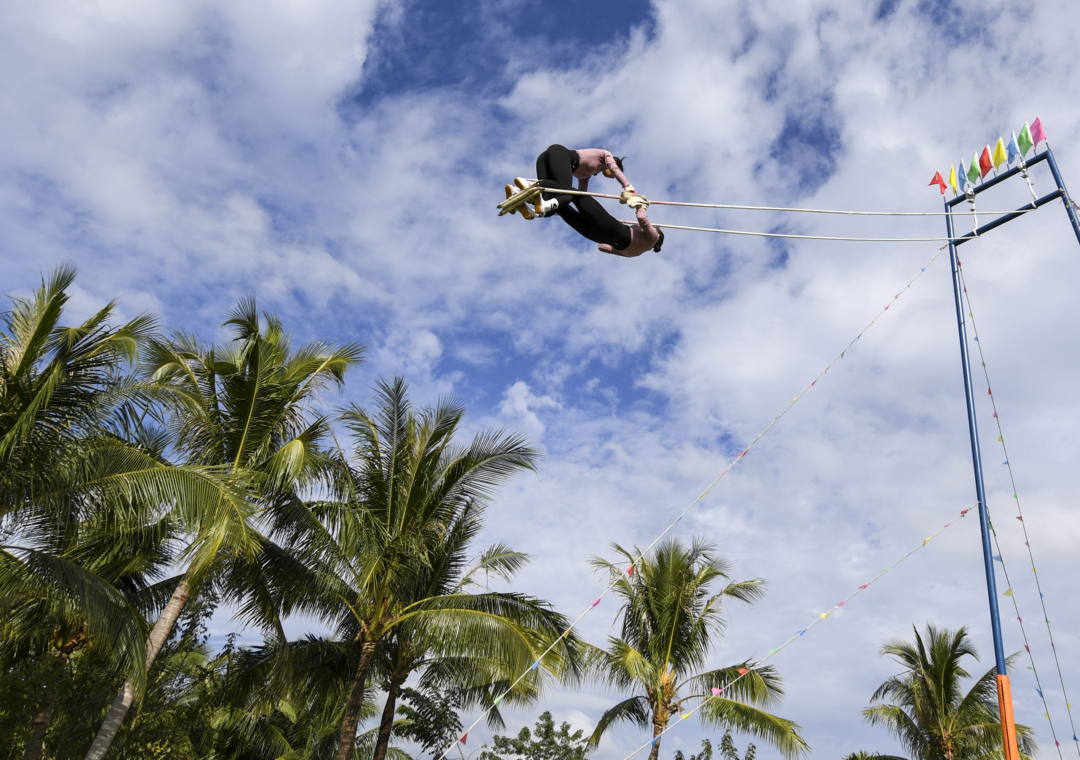 攀椰竞速就源于海南各民族群众爬树摘椰子的生活劳作场景