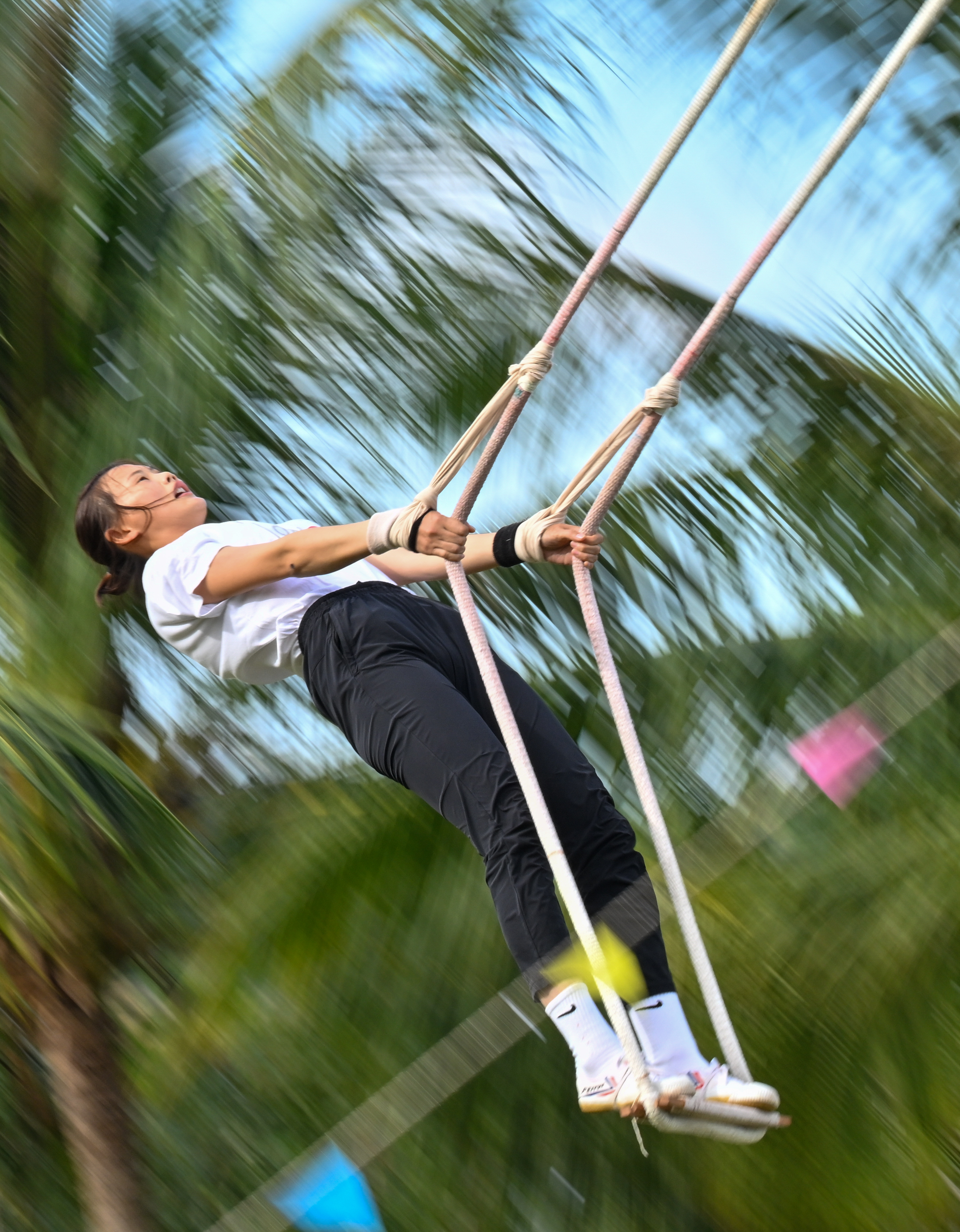 15岁的黎族姑娘朱梦丹是攀椰竞速项目海南代表队年龄最小的选手