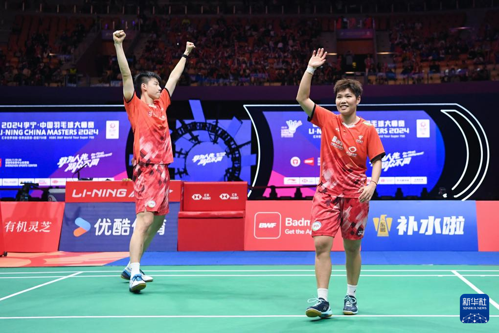 11月24日,冯彦哲/黄东萍(左)在得分后庆祝。