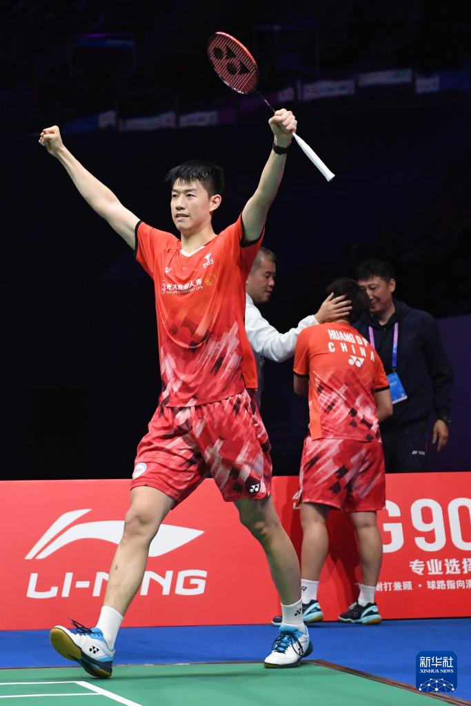 11月24日,冯彦哲/黄东萍(右)在夺冠后庆祝。