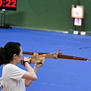 据悉,射弩起源于战国时期的楚国,也叫作土弩,是用木头和竹竿手工制作而成的,当时的人们用它作为狩猎工具。因为弩击发无声,射击的精确度高,并且可以就地取材、制作简单,既可以用作谋生、狩猎工具,也可以作为防身武器。