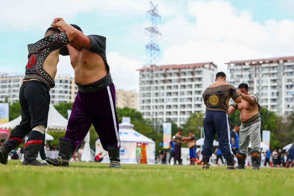 新华社三亚11月25日电(记者刘邓、王春燕)绿草如茵,洁白的蒙古包,两两较量的搏克手……这一场景仿佛令人“穿越”到了夏季草原上的那达慕大会。