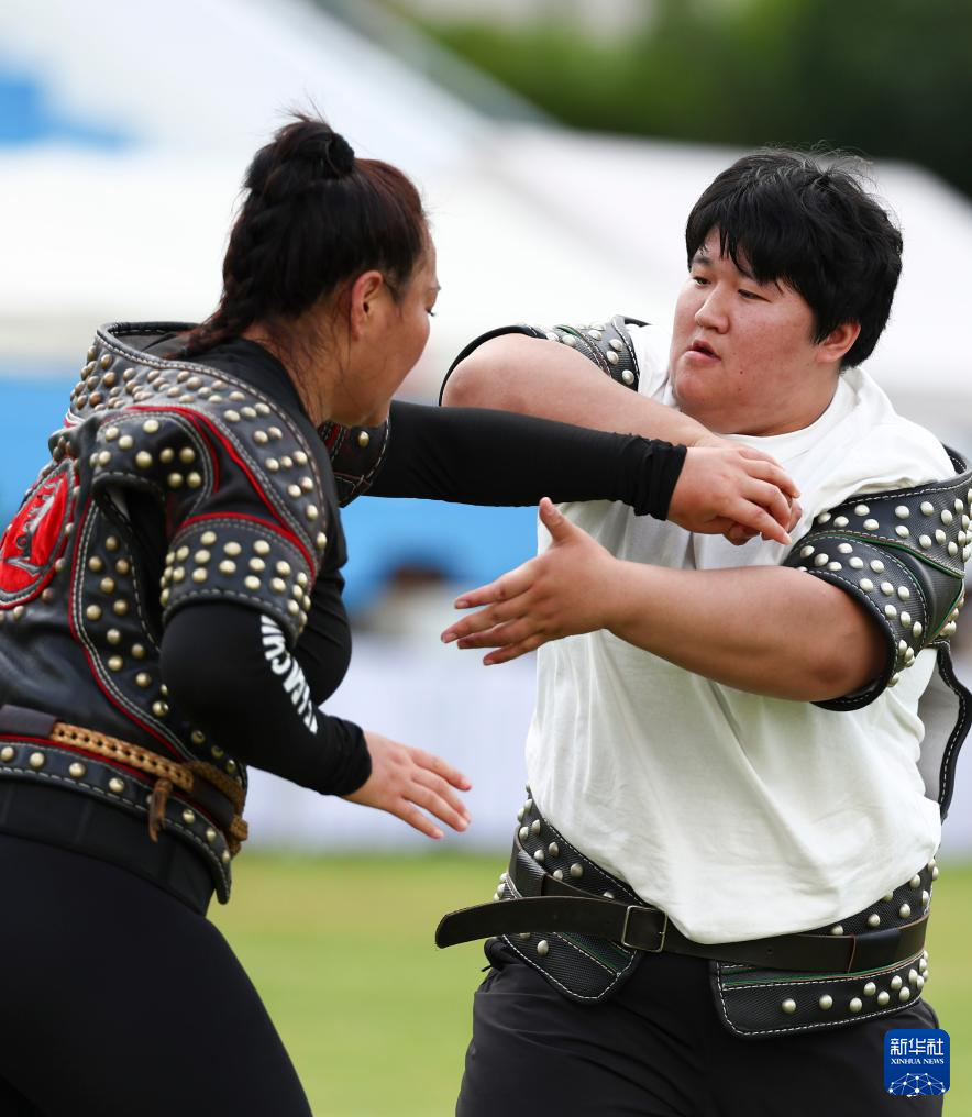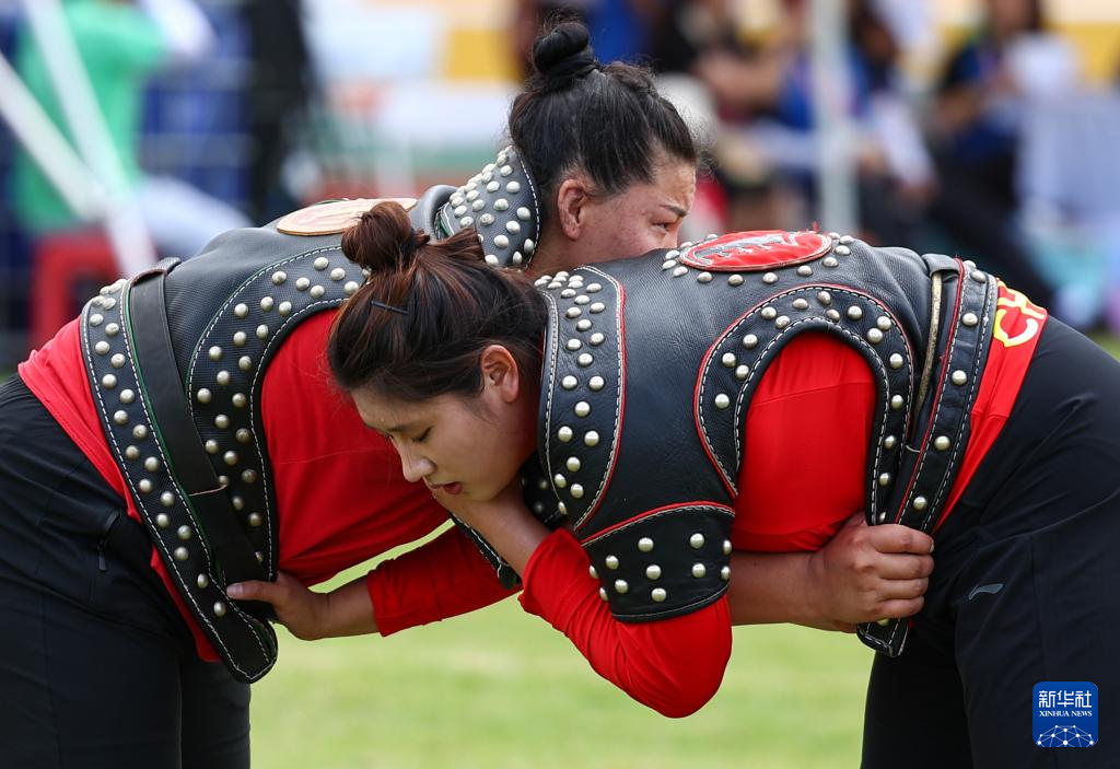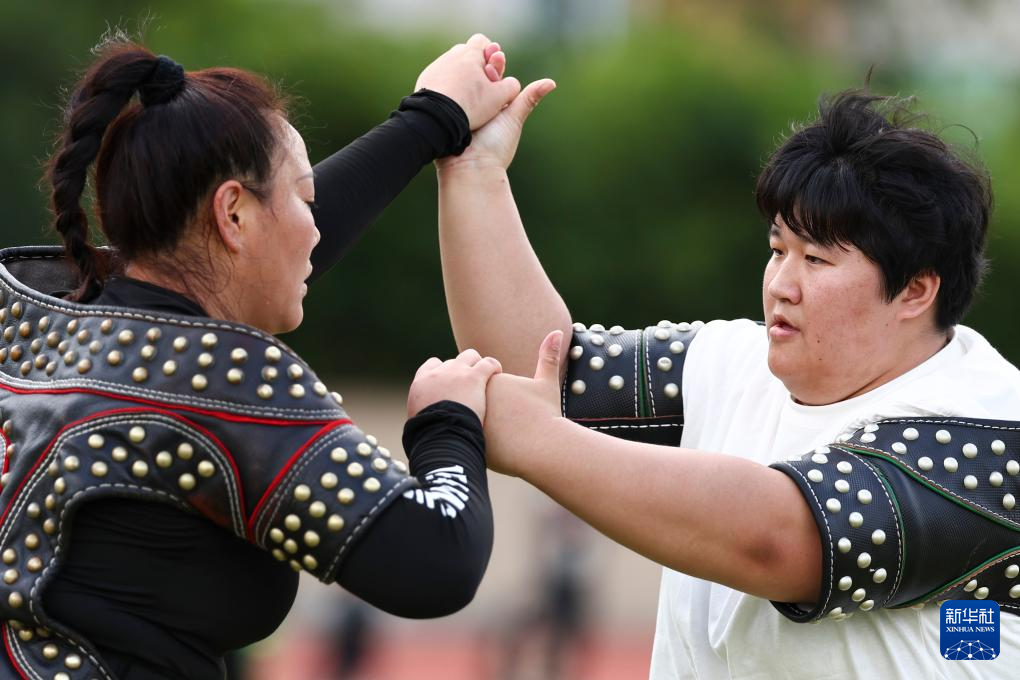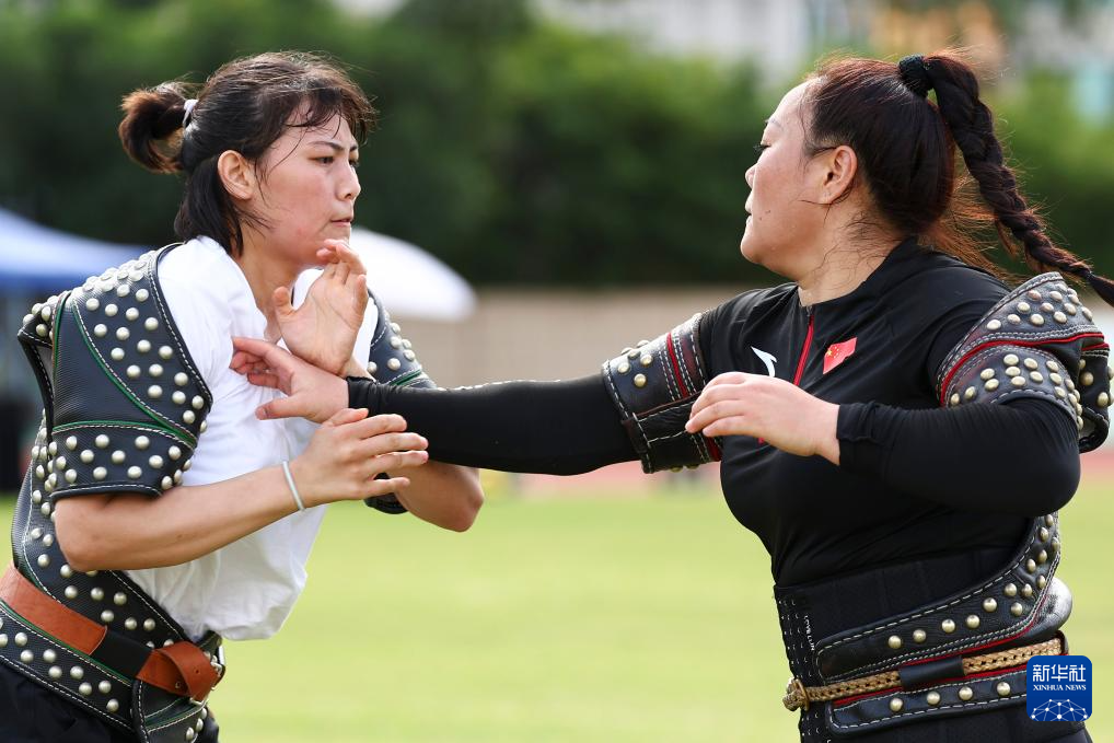 当日,第十二届全国少数民族传统体育运动会民族式摔跤搏克女子团体循环赛在海南三亚举行。