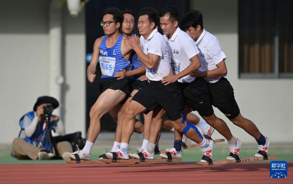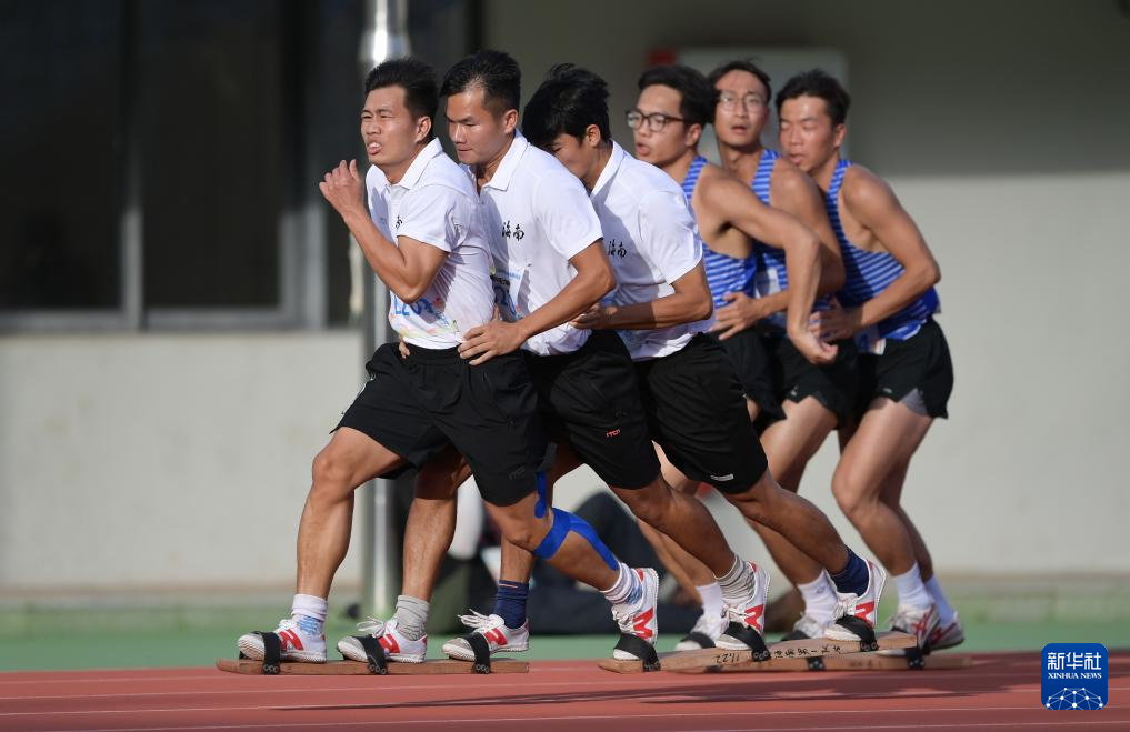 当日,第十二届全国少数民族传统体育运动会板鞋竞速男子200米决赛在海南三亚举行。