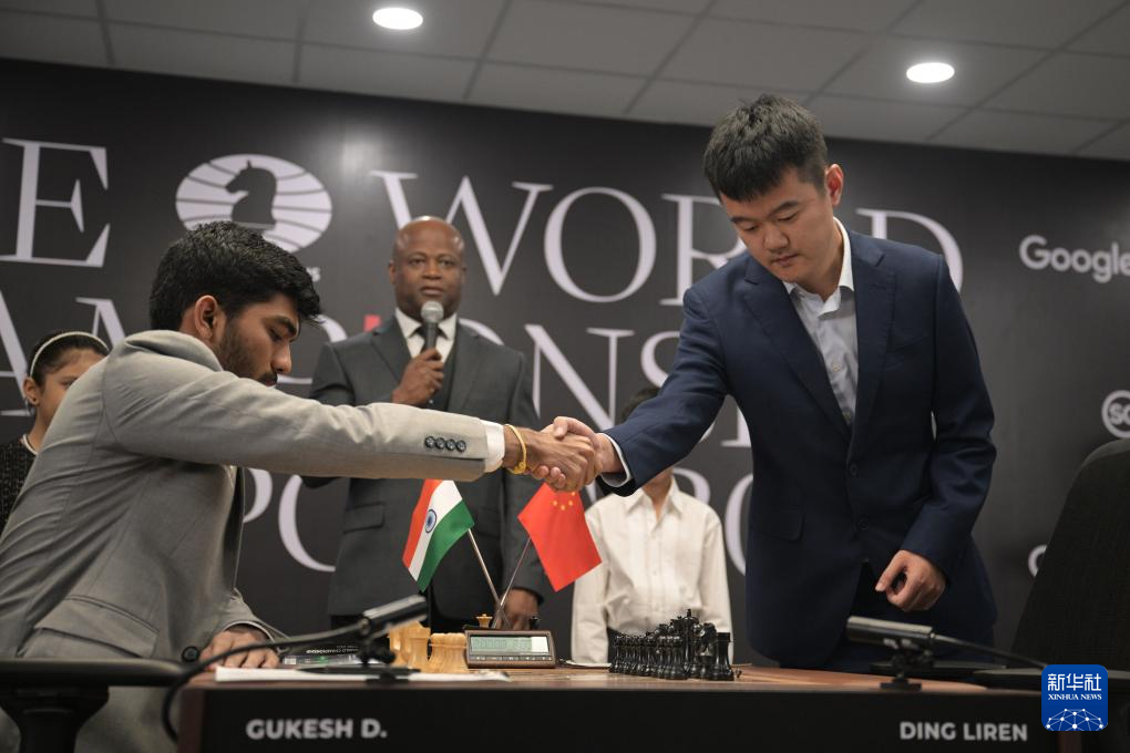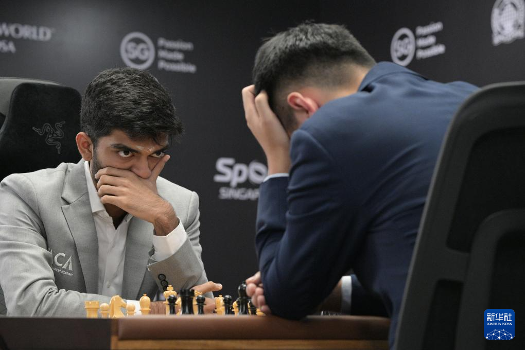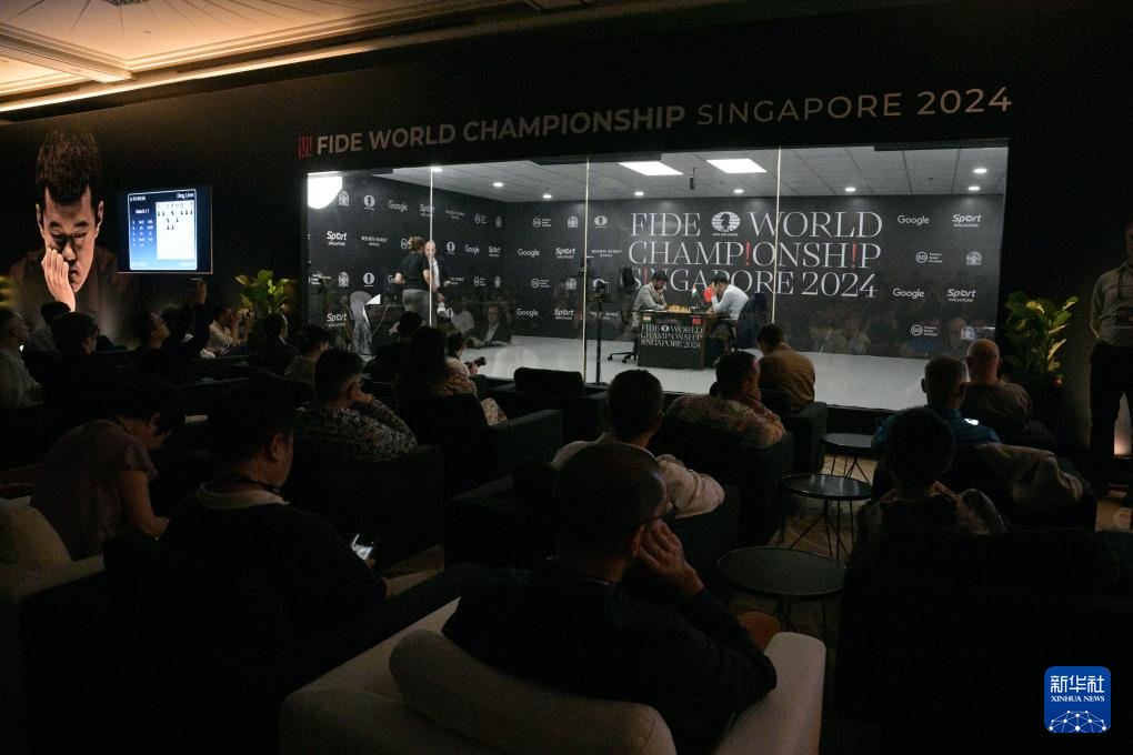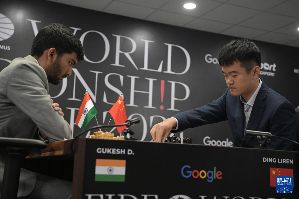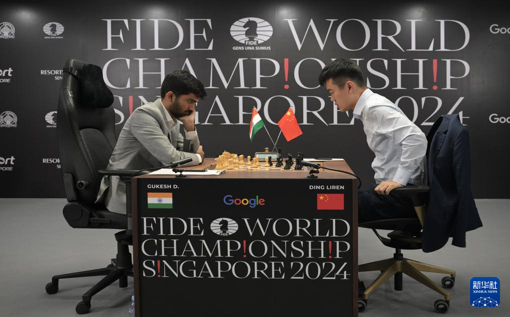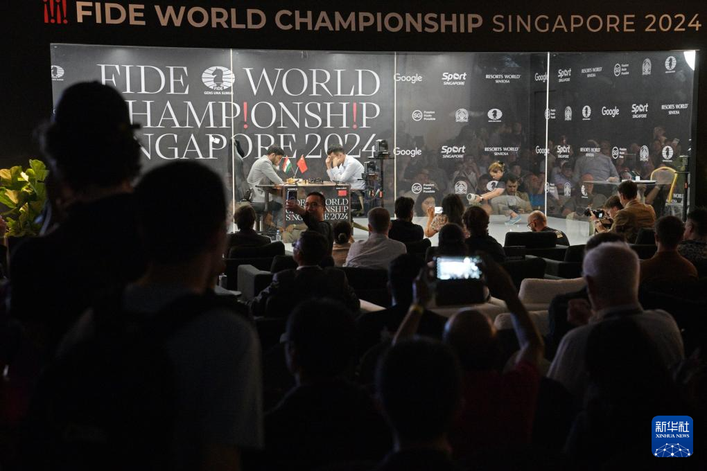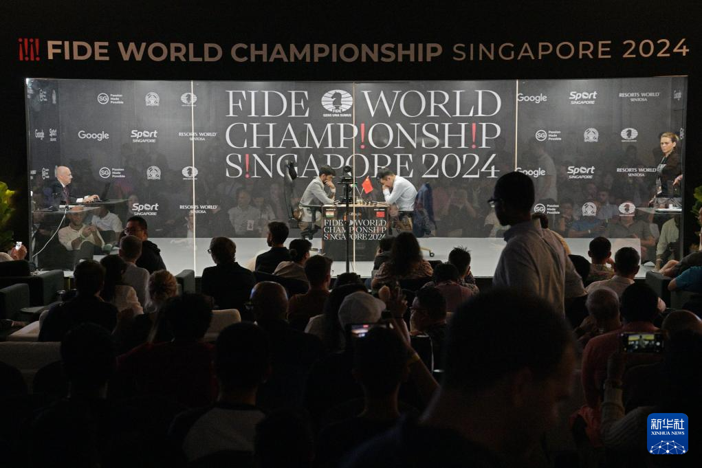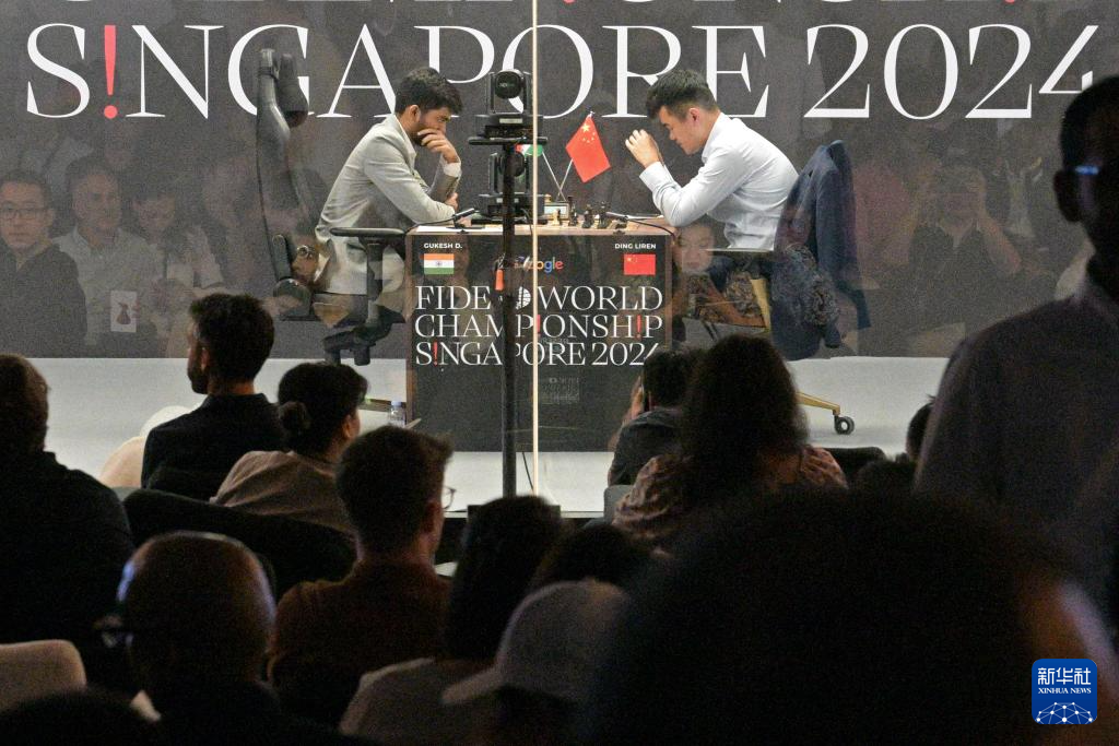 当日,2024年国际棋联国际象棋世界冠军赛在新加坡圣淘沙开赛。在首轮比赛中,中国棋手丁立人对阵印度棋手古克什。