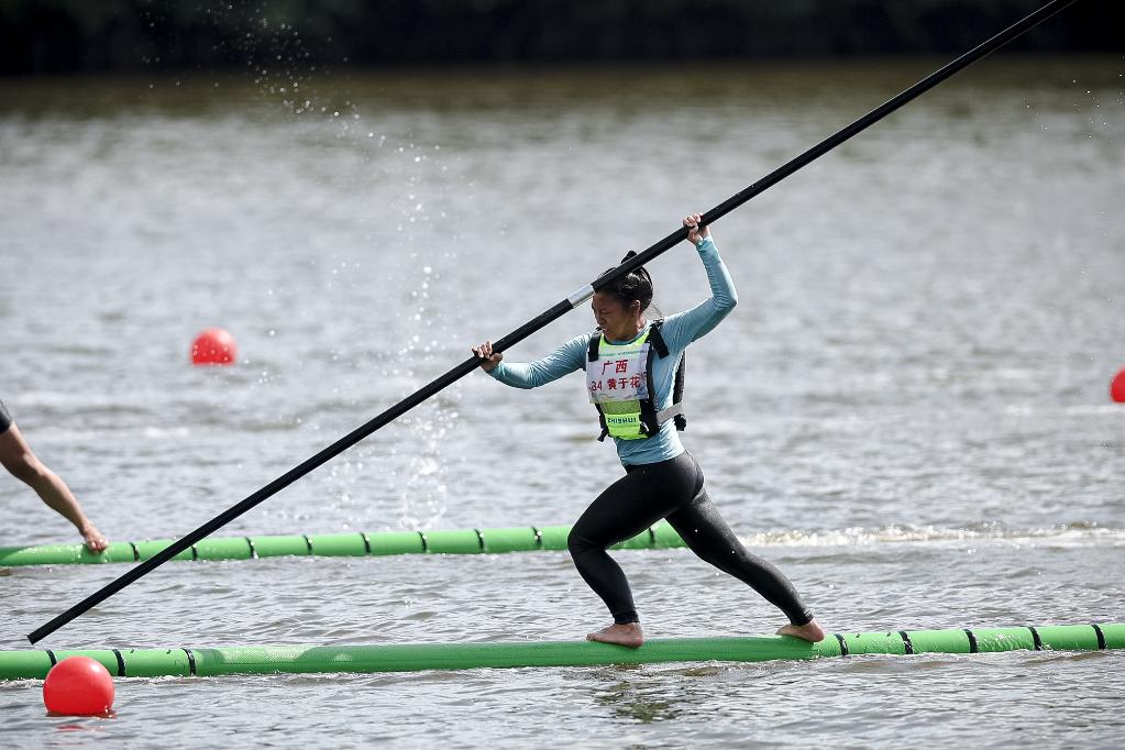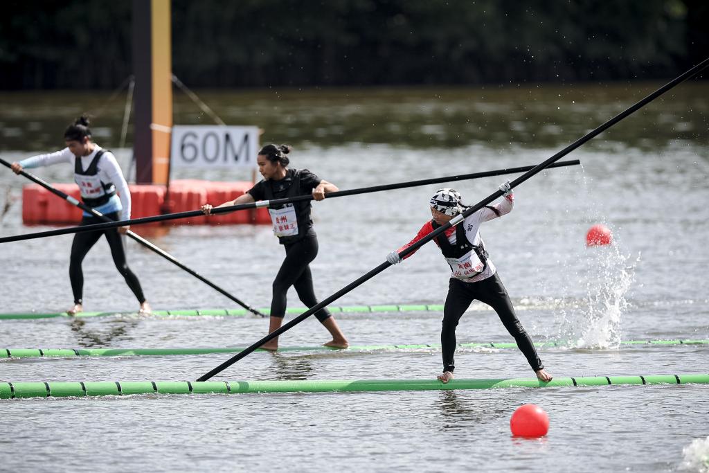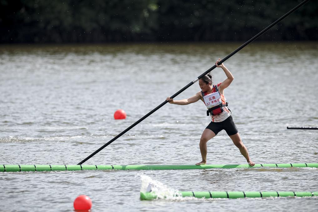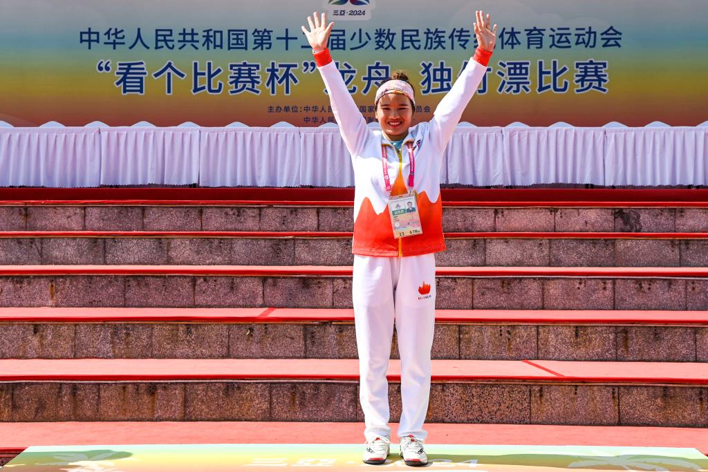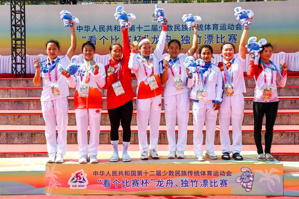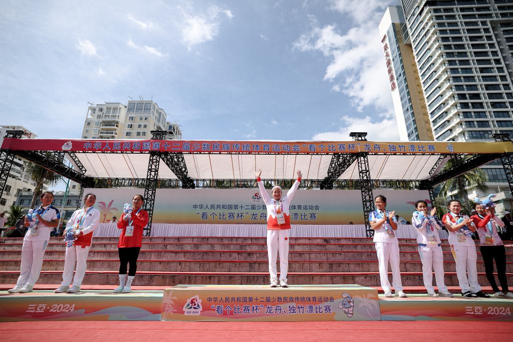 当日,第十二届全国少数民族传统体育运动会独竹漂女子组60米直道赛决赛在海南省三亚市举行。