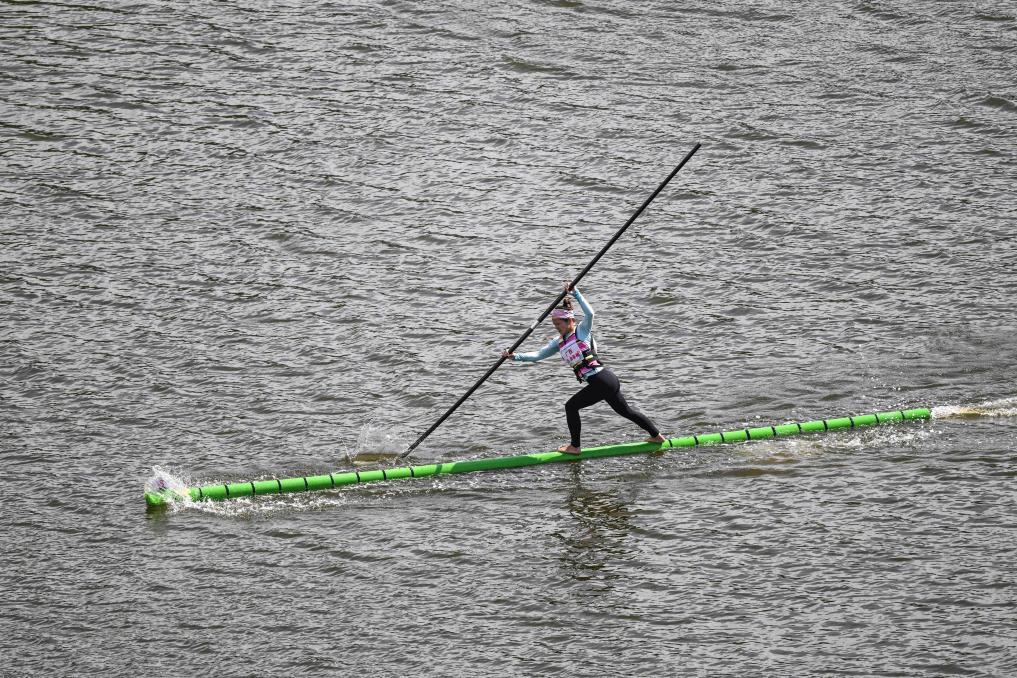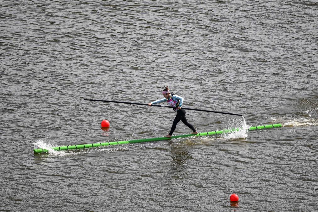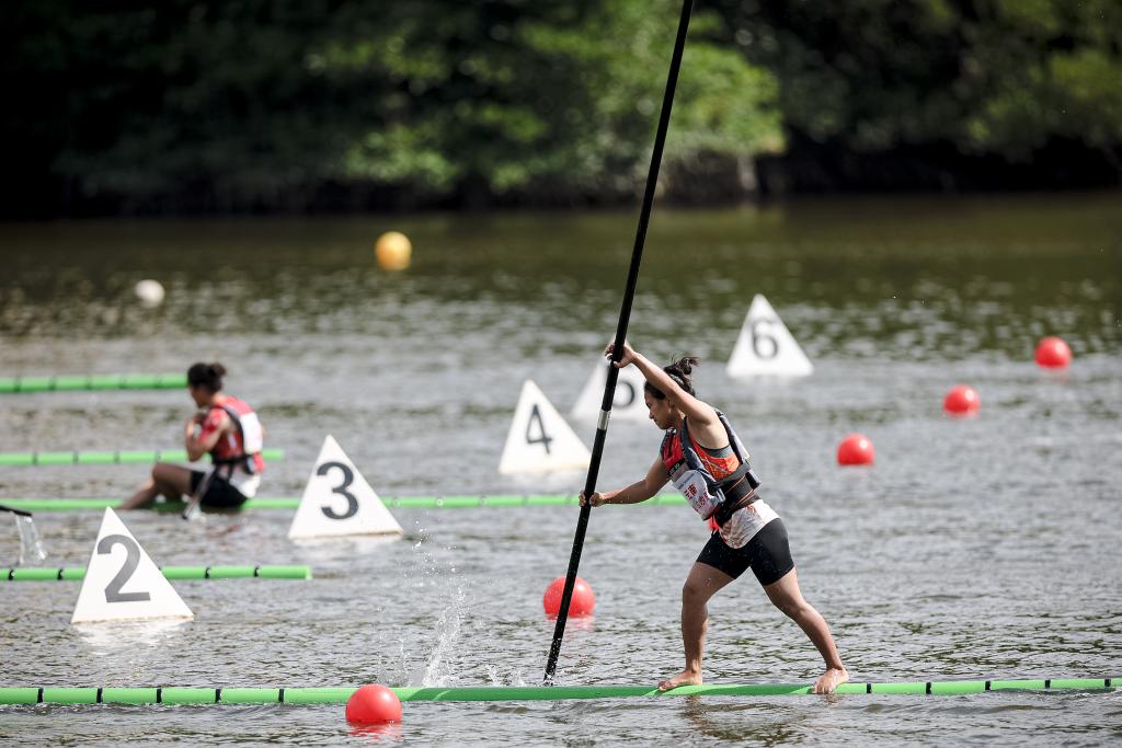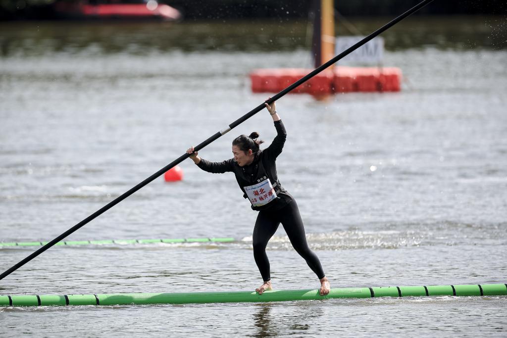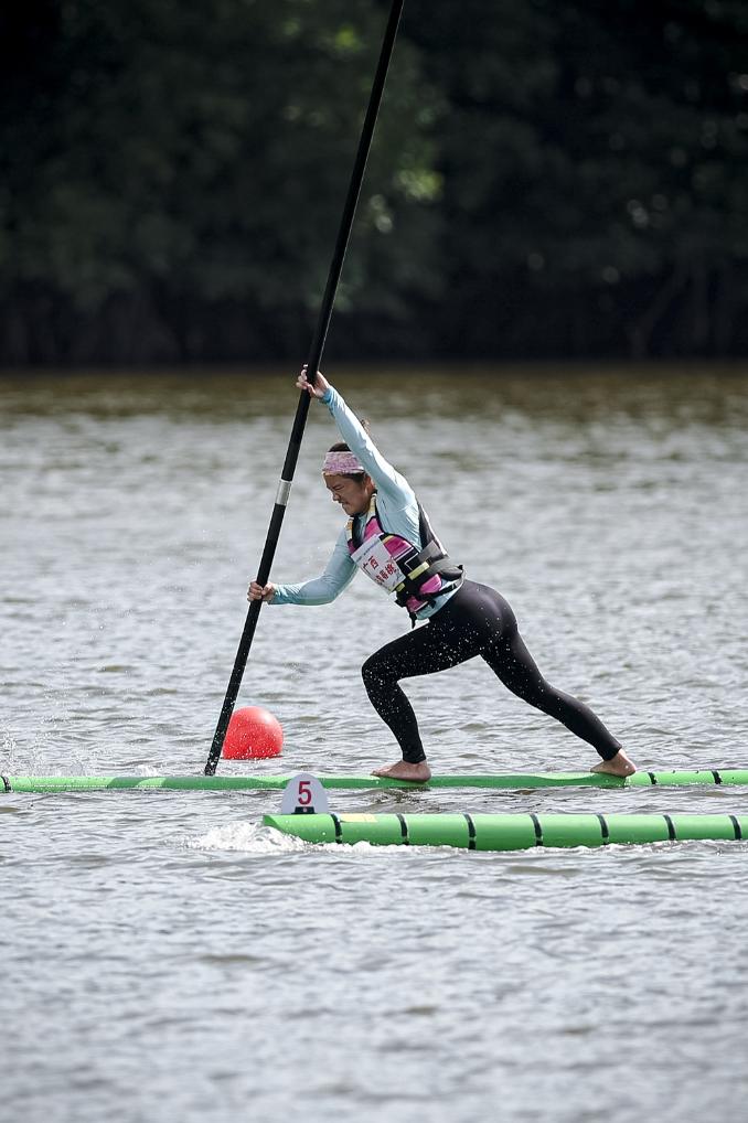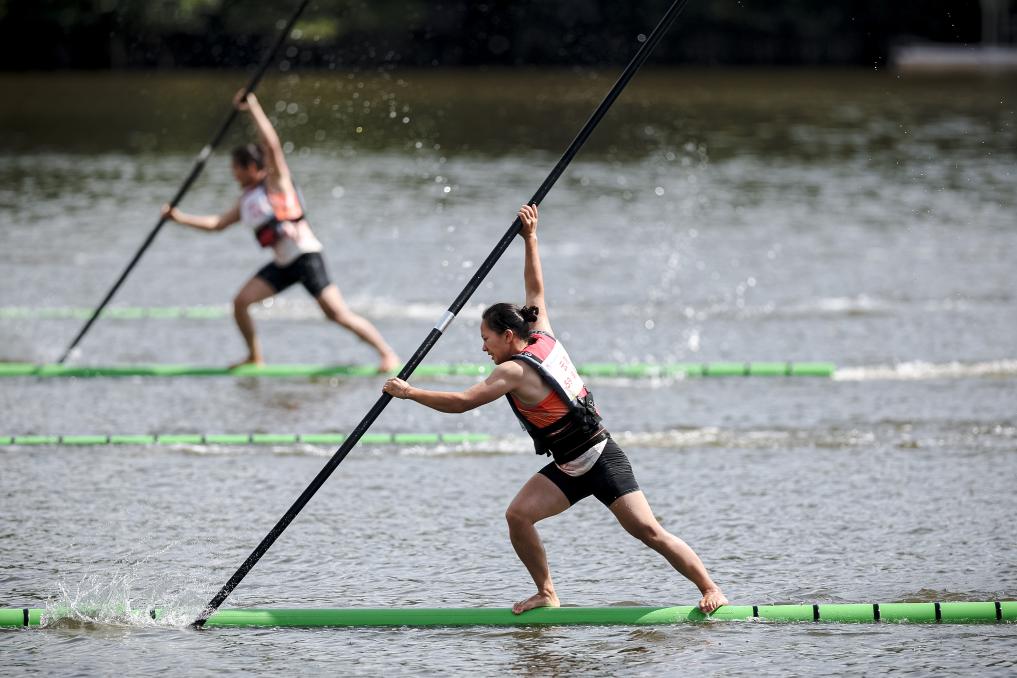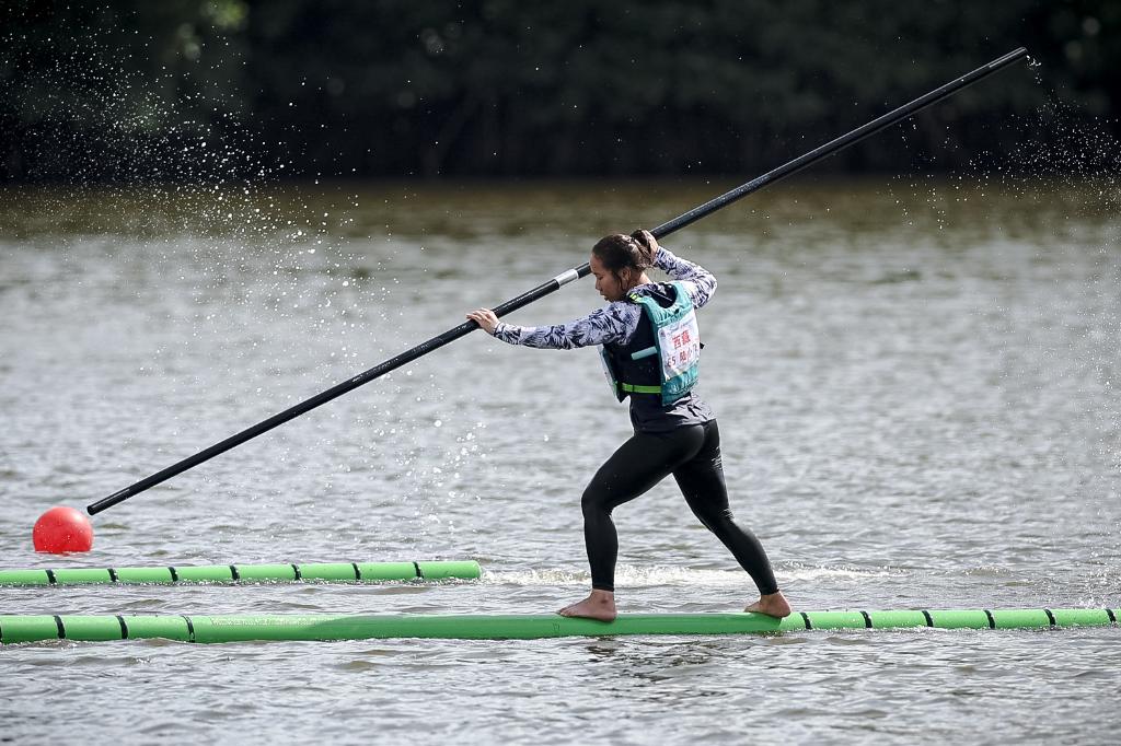 当日,第十二届全国少数民族传统体育运动会独竹漂女子组60米直道赛决赛在海南省三亚市举行。