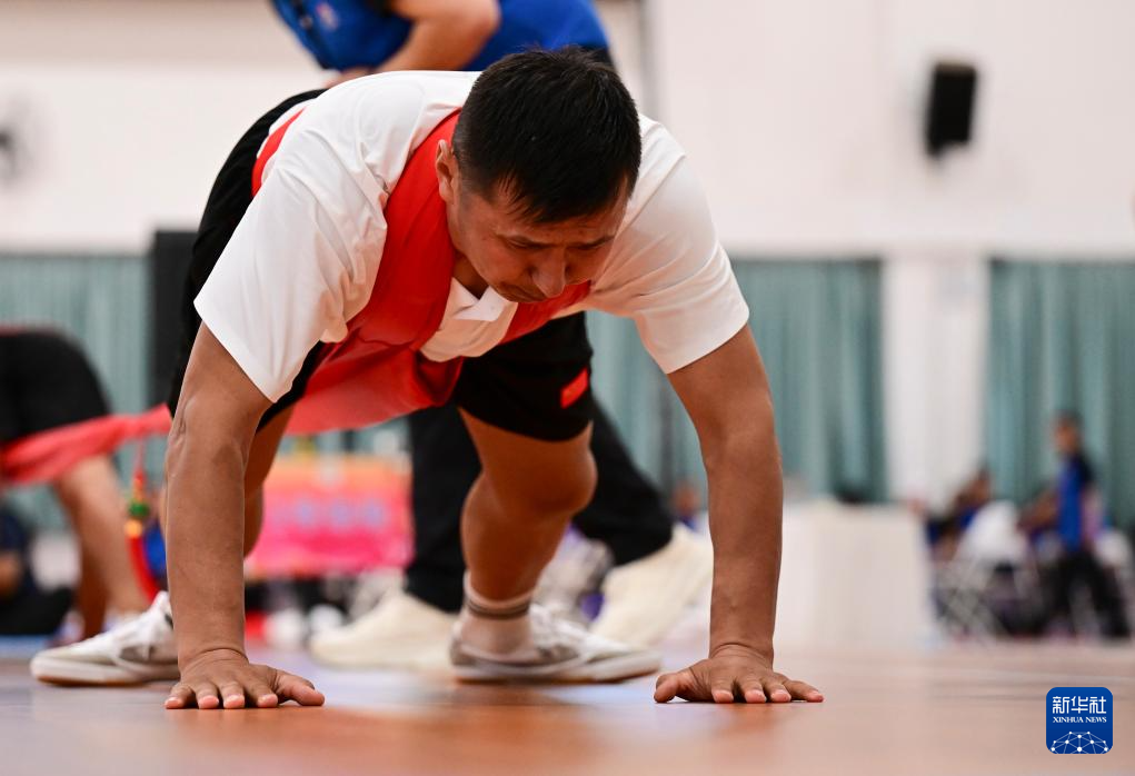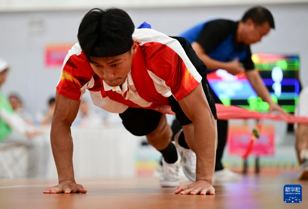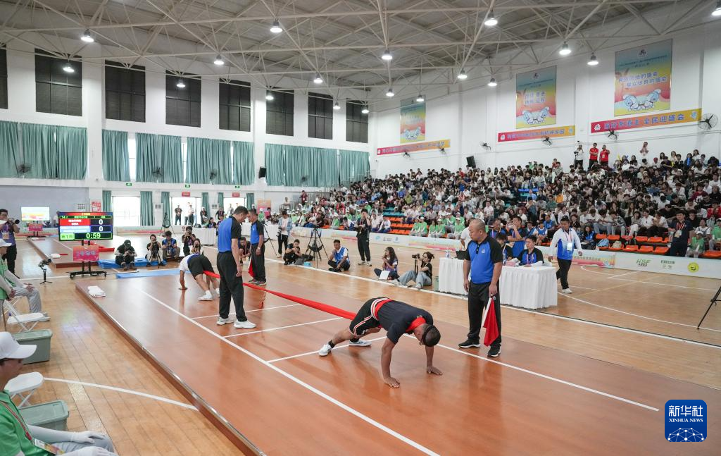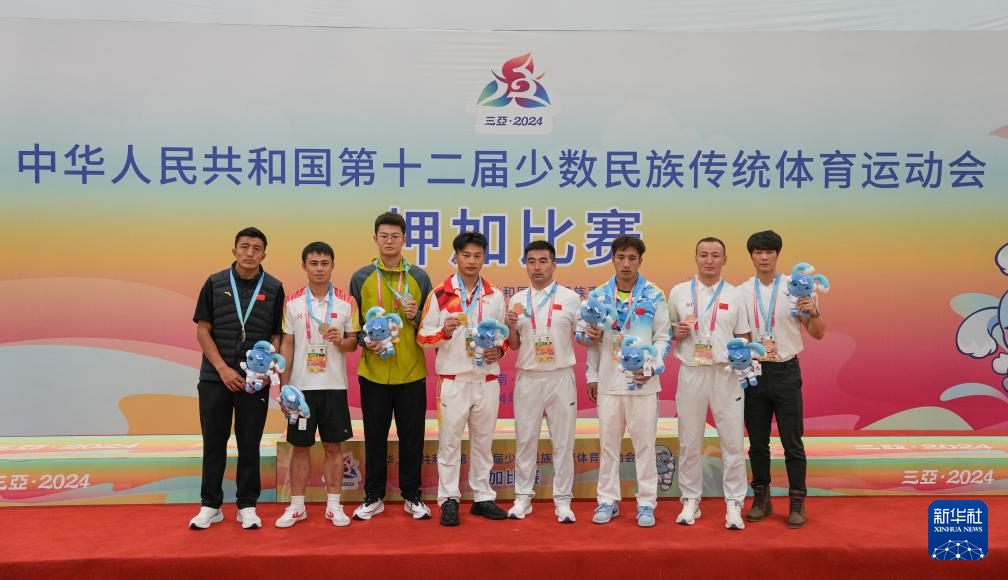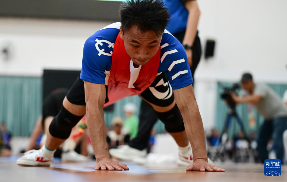 当日,第十二届全国少数民族传统体育运动会押加项目55、61、68、76、85公斤级五个组别的决赛在海南省三亚市举行。