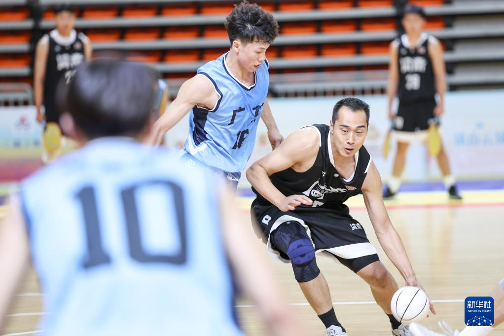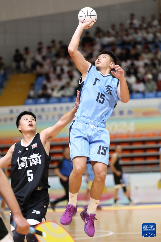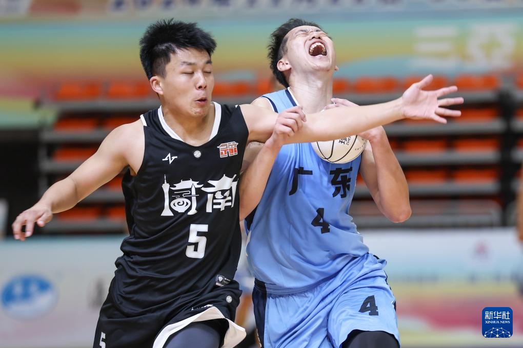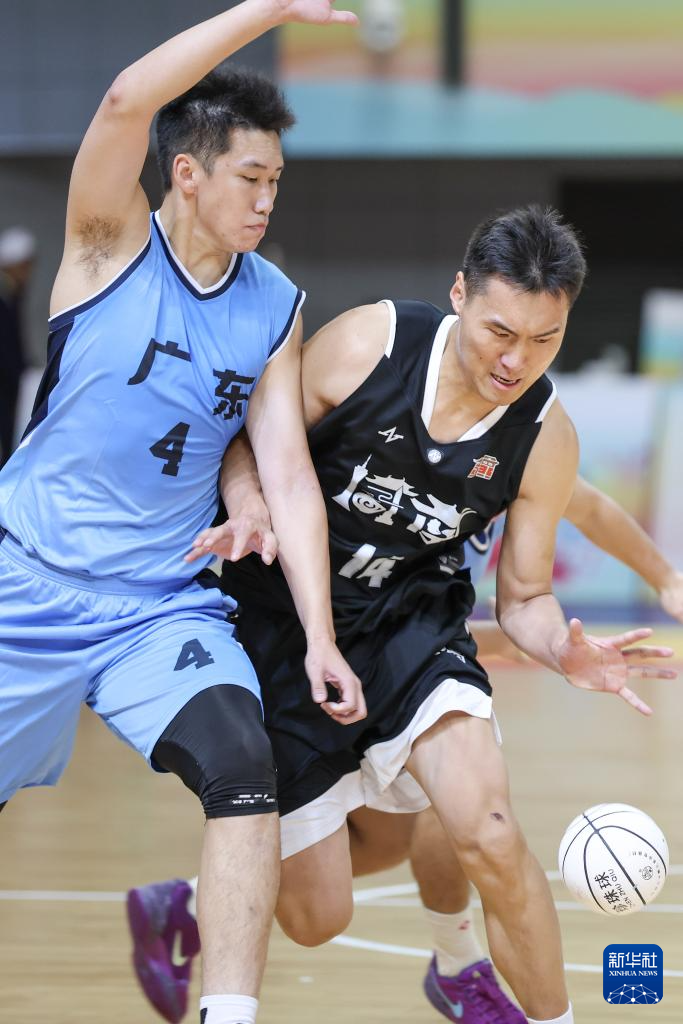 11月28日,广东队球员穆德天(右)与河南队球员李家骏在比赛中拼抢。最终,广东队37比26战胜河南队。