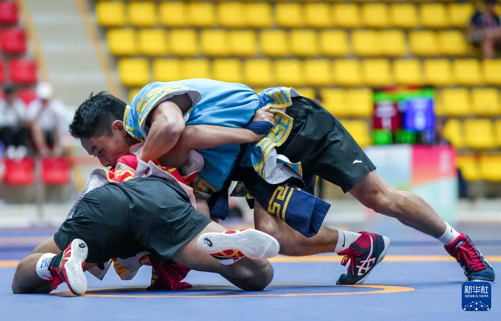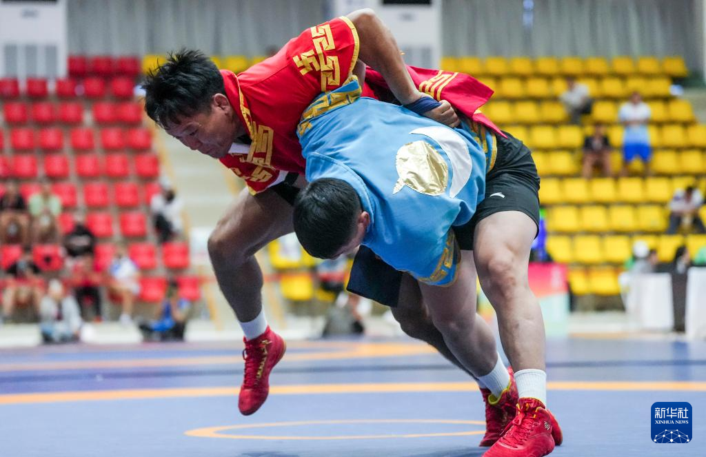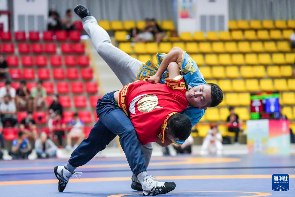 当日,第十二届全国少数民族传统体育运动会民族式摔跤北嘎(藏族式摔跤)决赛在海南省三亚市举行。
